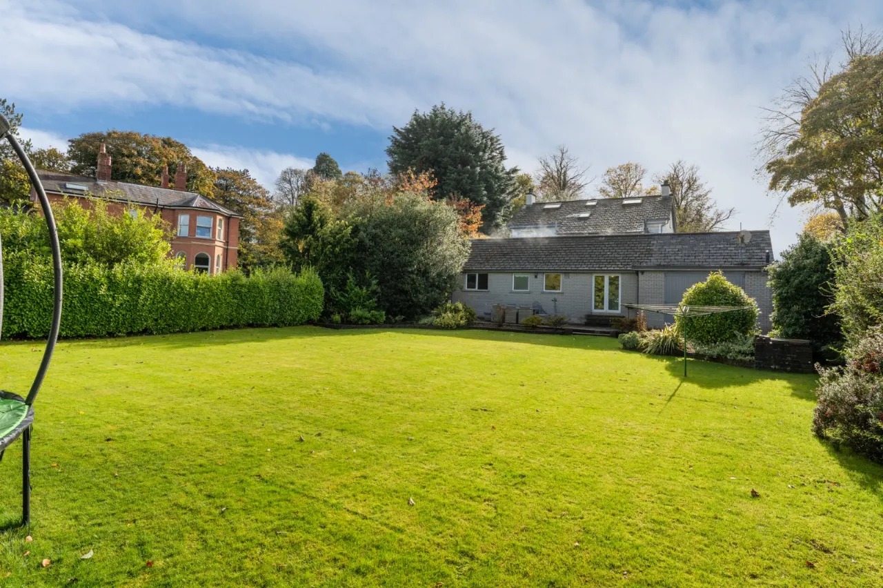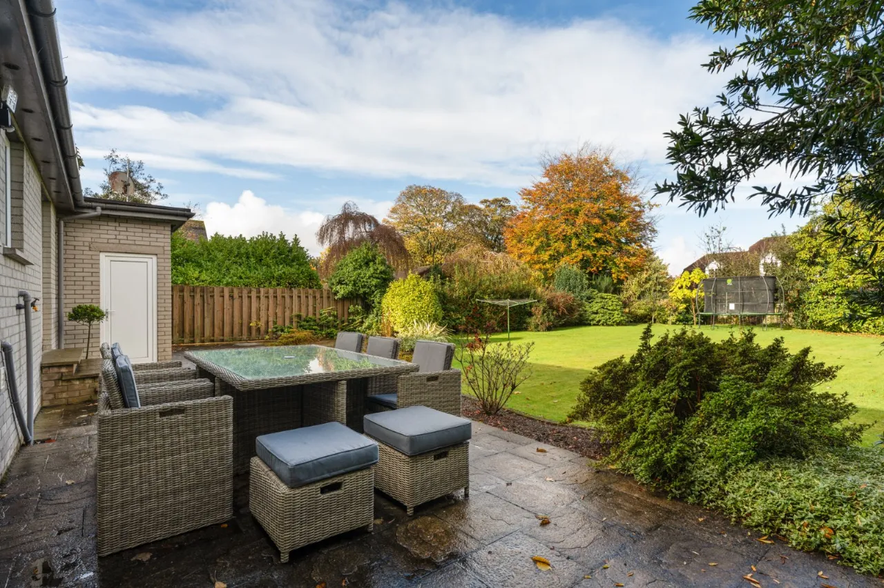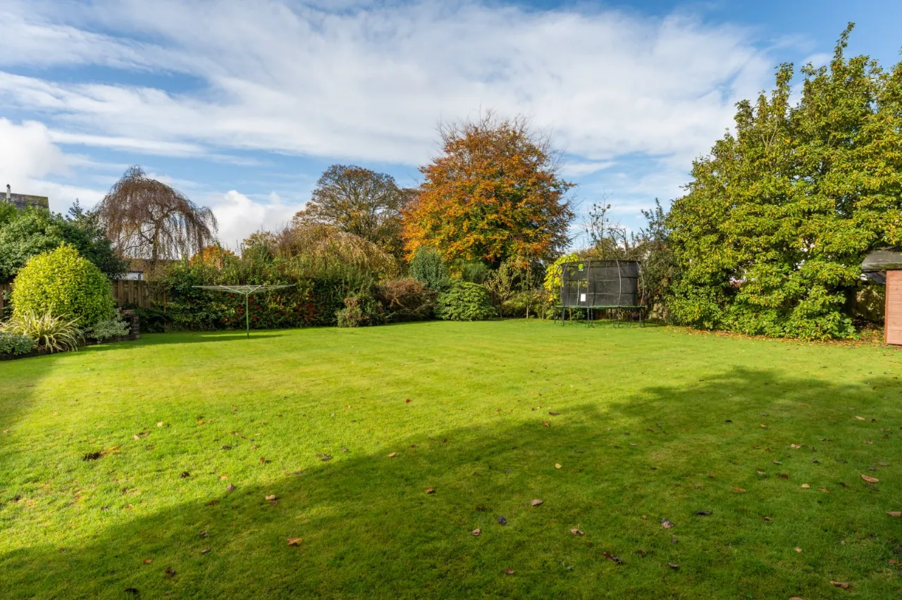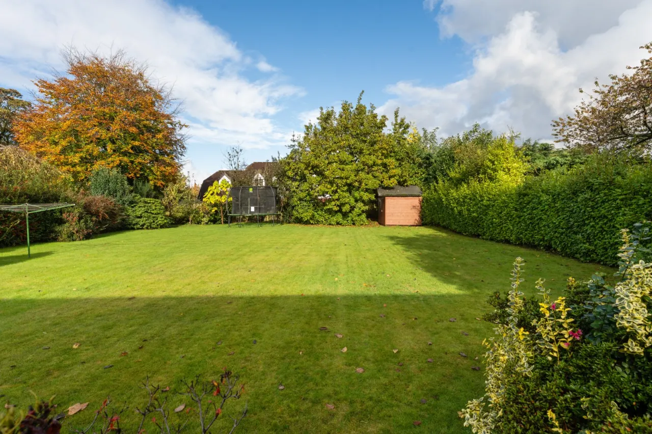 Large garden to rear laid in lawns, patio space, garden shed, water supply, mature boundaries and shrub beds, security lighting.