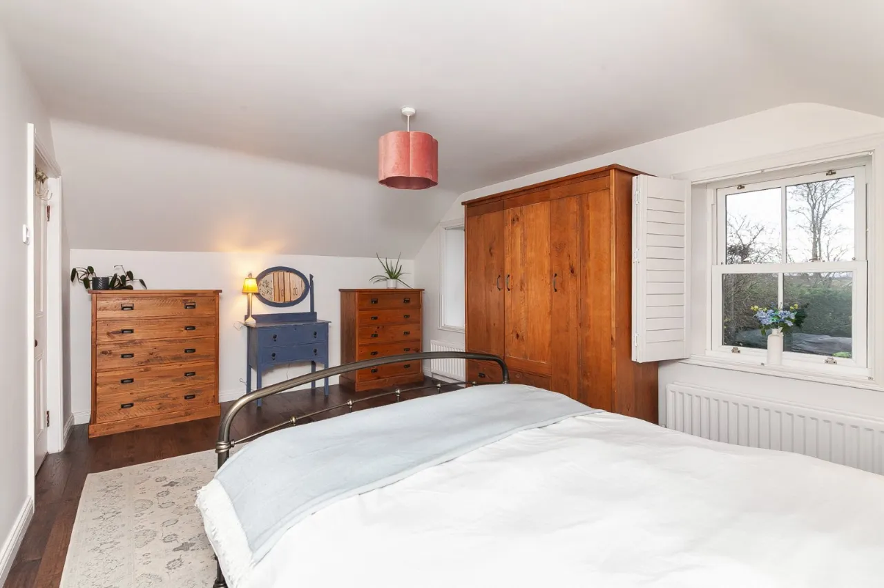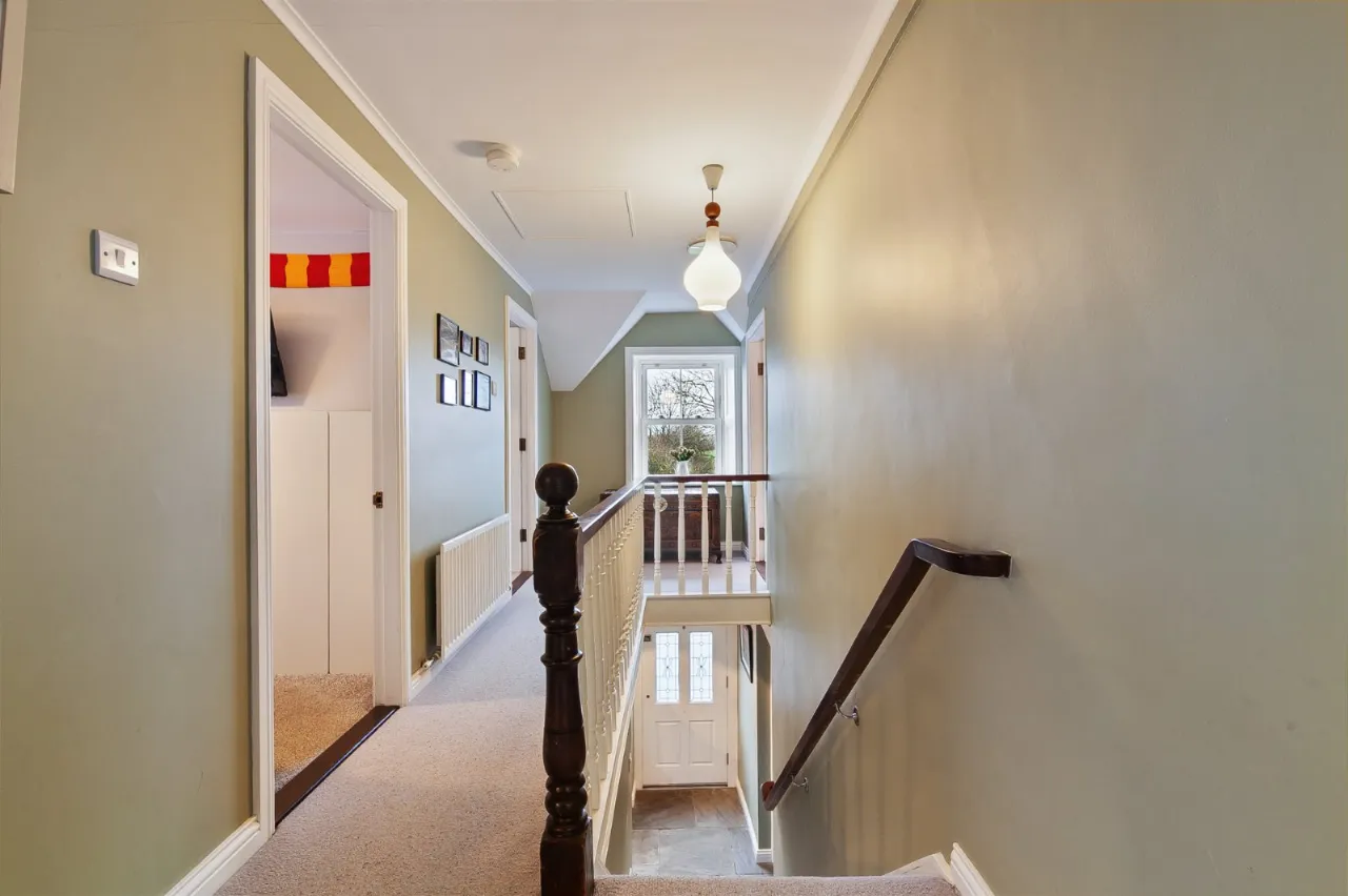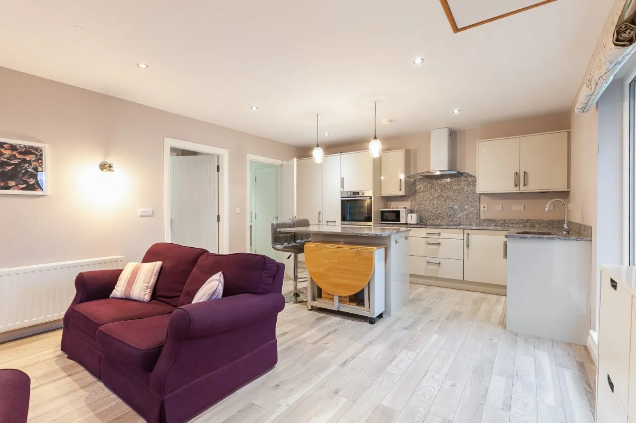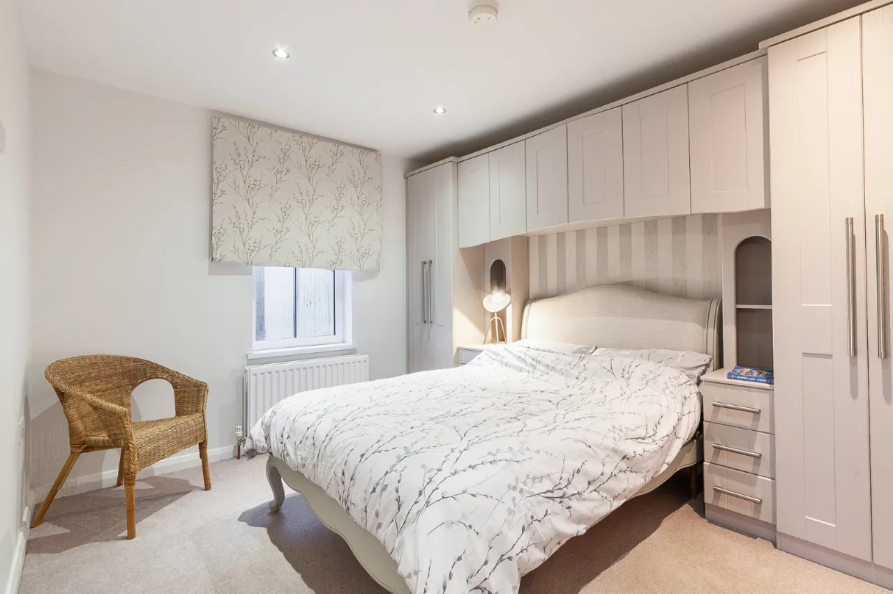 Contemporary kitchen with excellent range of units and integrated appliances. Access via folding wooden ladder to floored roofspace, ideal for additional accommodation if required (subject to statutory consents).