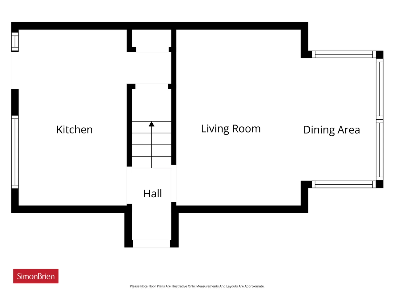 Laminate floor and large bay windows.