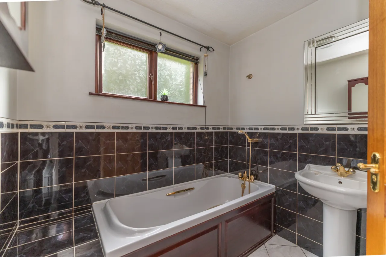 Internally, the home features five generously sized bedrooms, along with a bright and comfortable living room and a separate sitting/dining room, creating versatile spaces for both relaxation and entertaining. The kitchen is well laid out and complemented by a practical utility room, while a main bathroom and separate shower room enhance everyday convenience for a busy household.