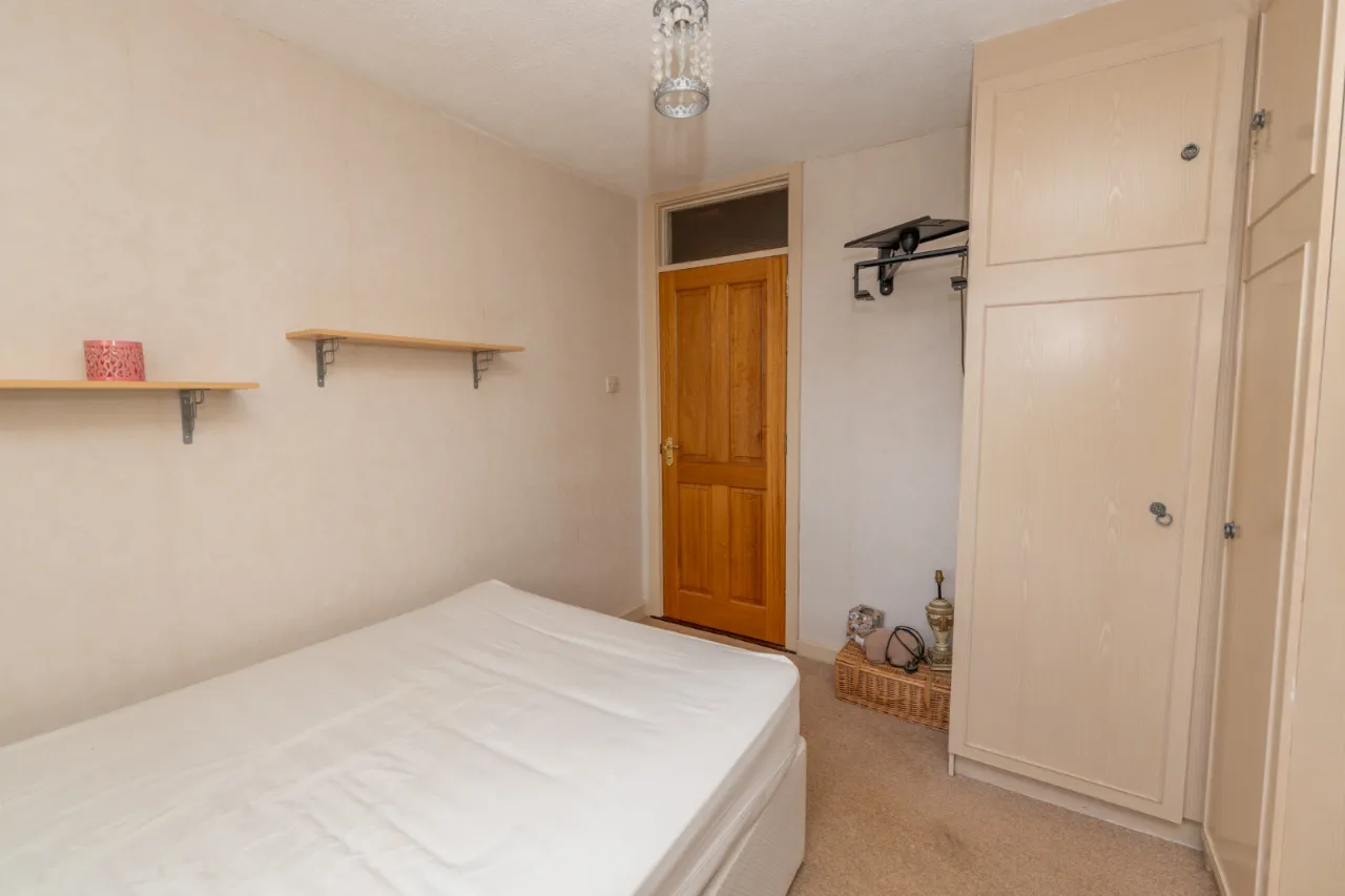 BEDROOM 3: 9'7" x 10'10" (2.93m x 3.31m) Carpet floor, double radiator, built in storage units, mahogany windows.