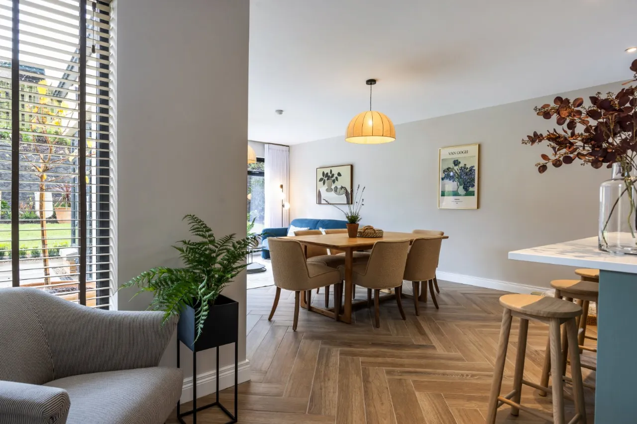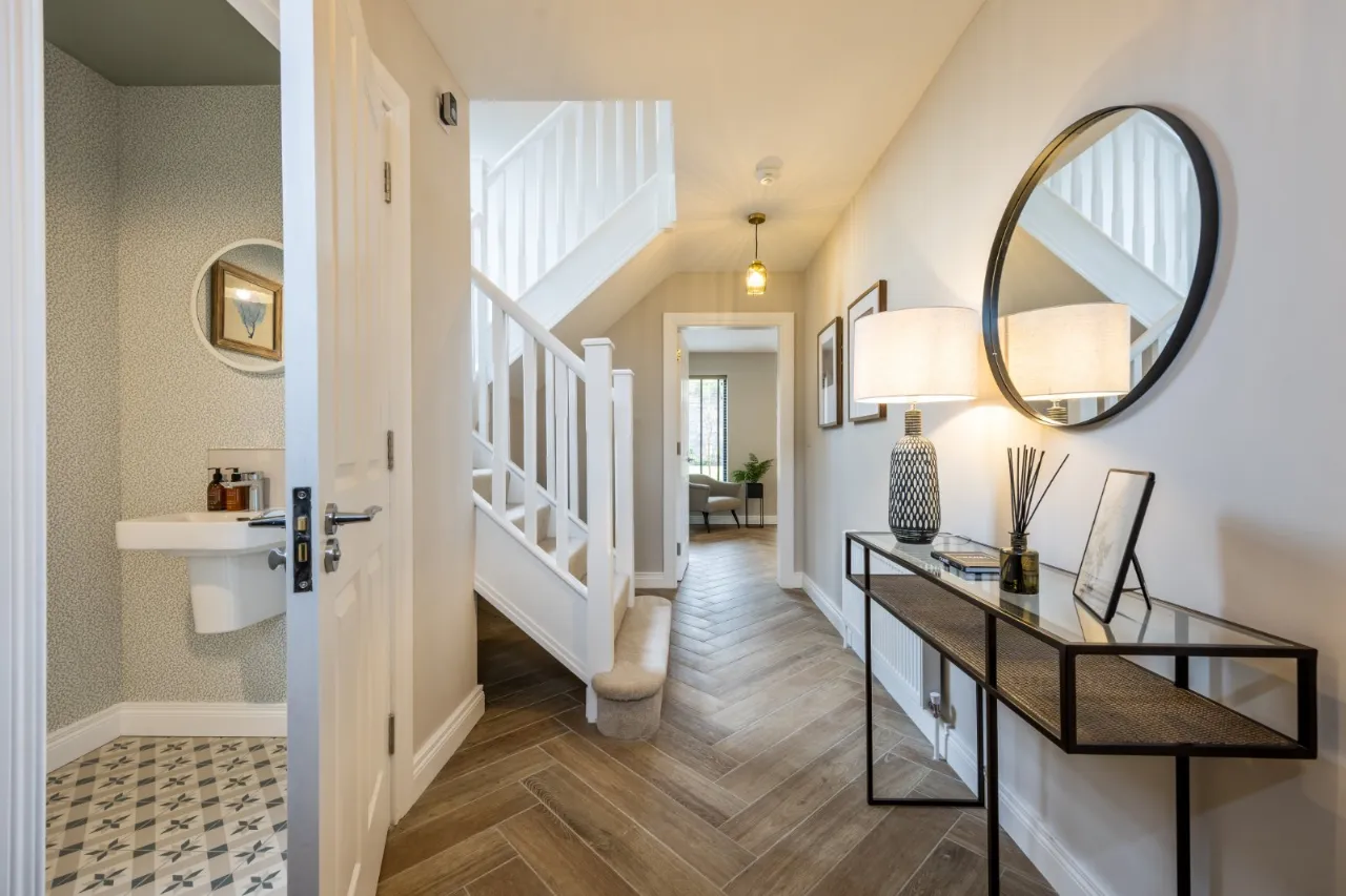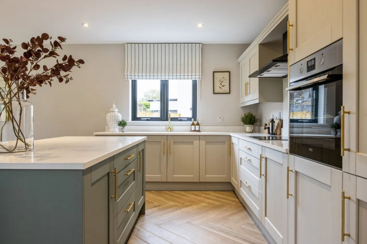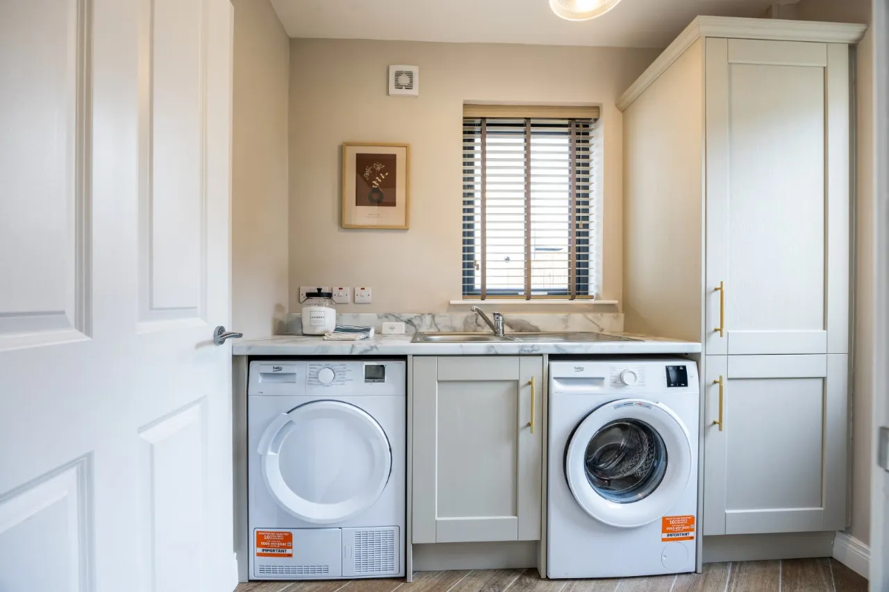 Integrated appliances including built-in oven, electric hob, extractor hood, dishwasher, fridge freezer and washer/dryer (free standing washing machine to utility where applicable)