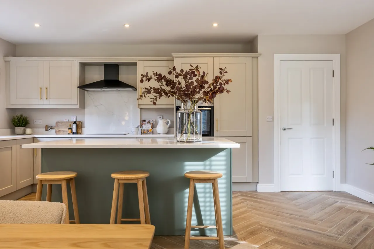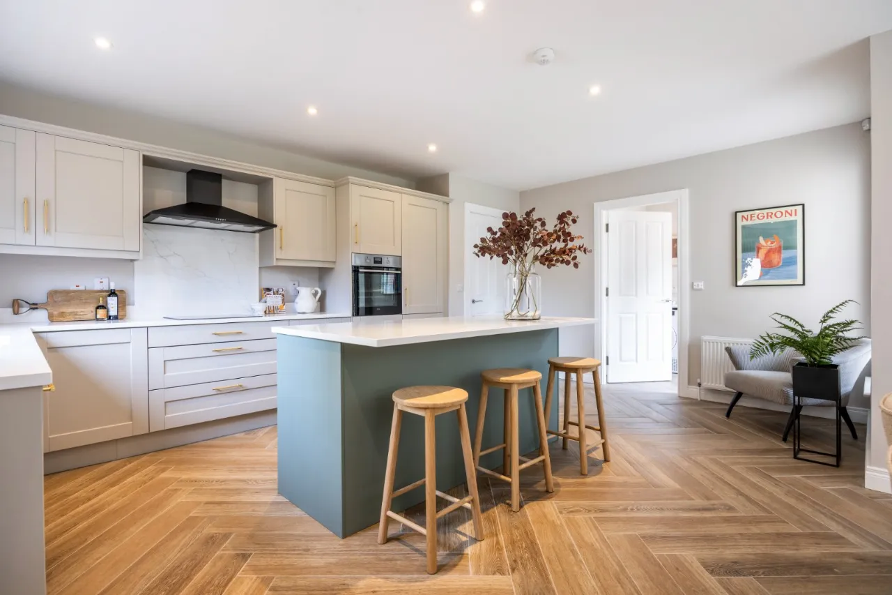 A choice of fully fitted kitchens including doors, handles, worktops with matching upstands with glass splash back