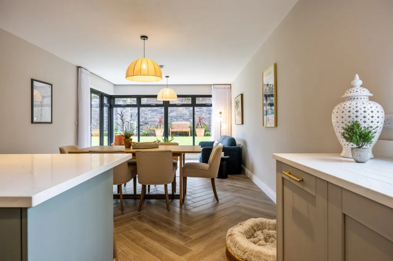 Ceramic floor tiling to kitchen, dining area, entrance hall, store, bathroom, ensuite, and WC