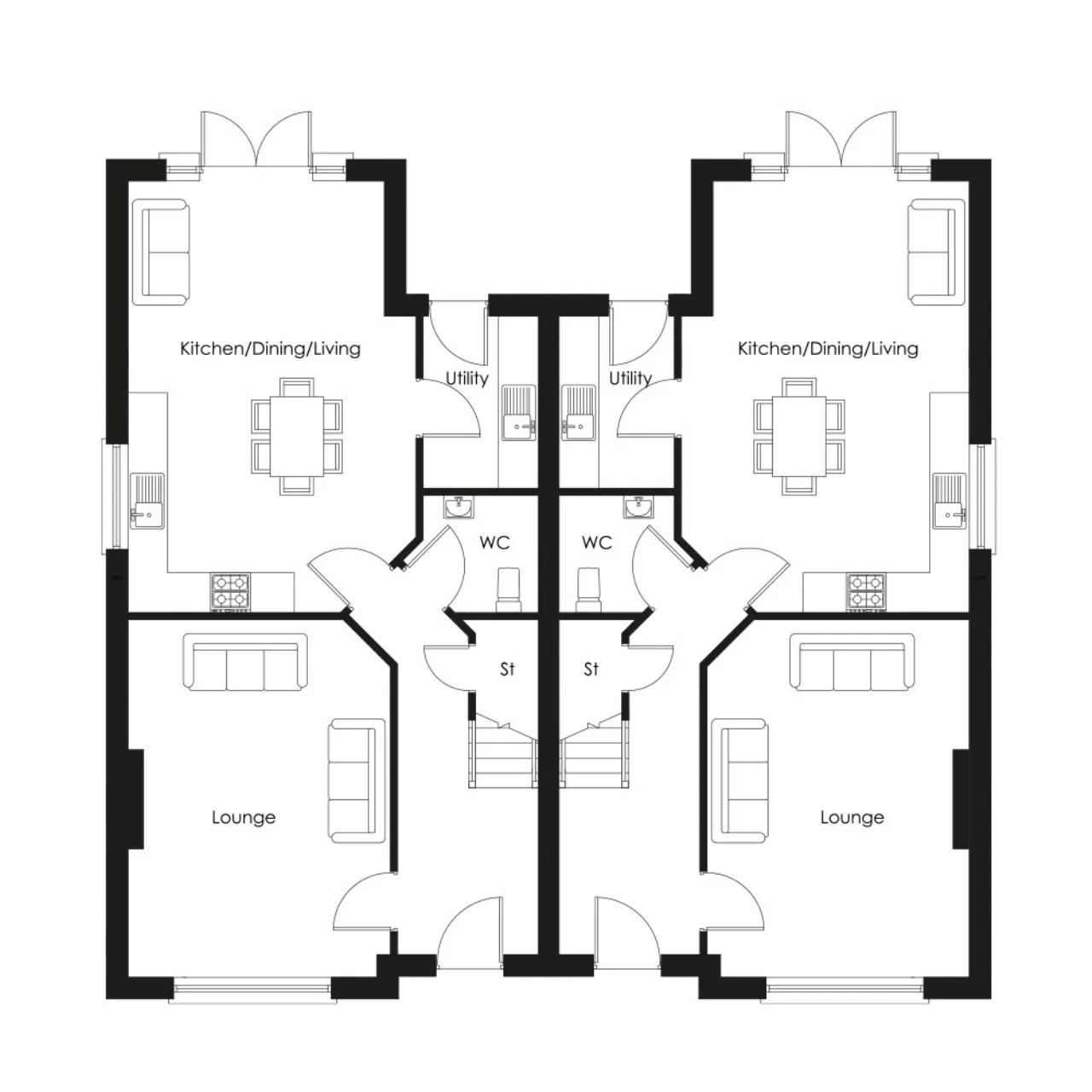 Traditional masonry construction with stone, render or brick to selected house types