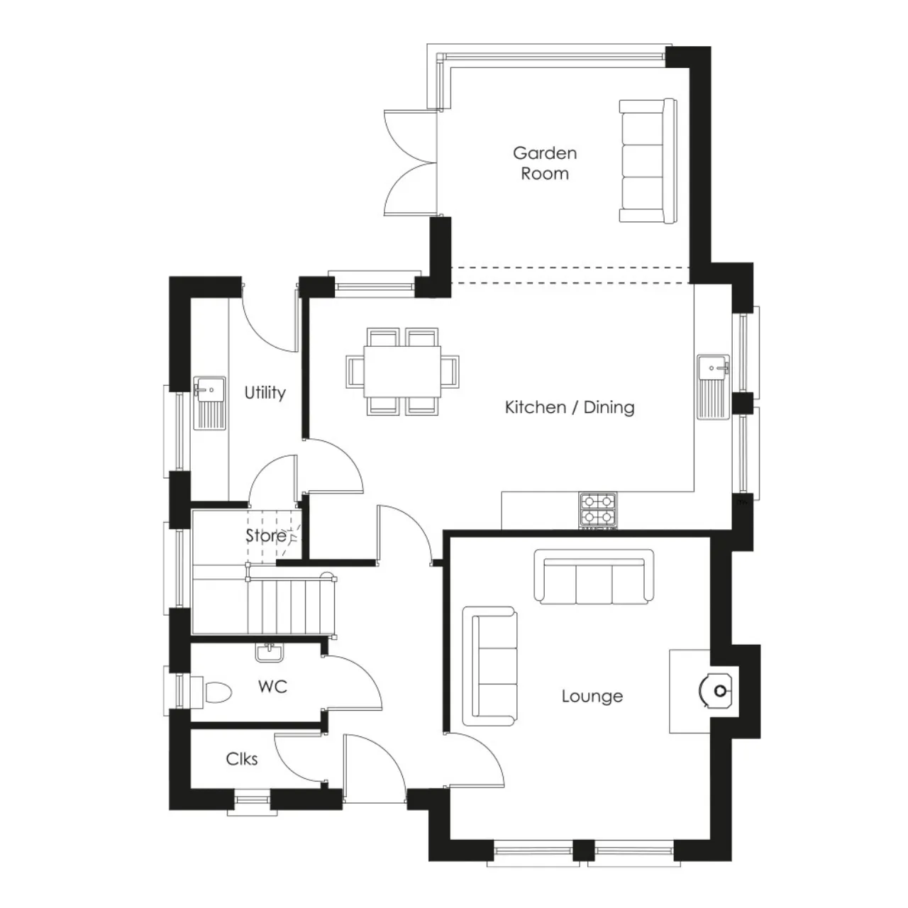 Integrated appliances including built in oven, electric hob, extractor hood, dishwasher, fridge freezer and washer/dryer (free standing washing machine to utility where applicable)