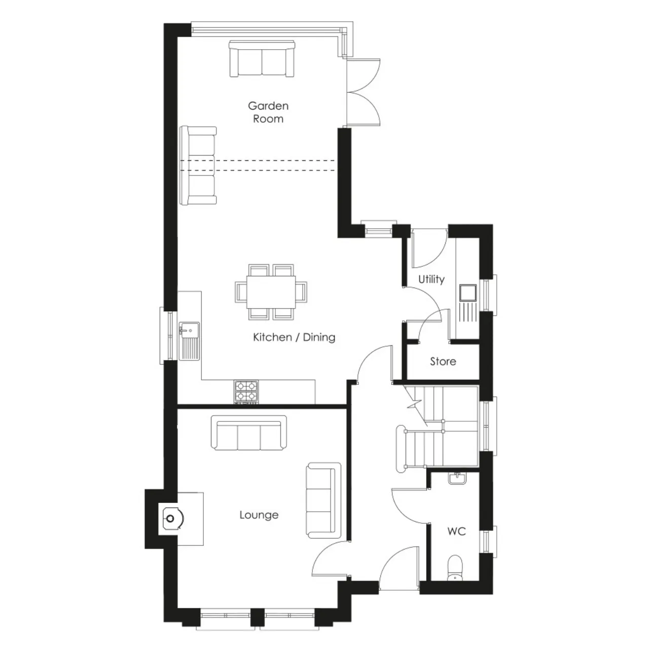 Traditional masonry construction with stone, render or brick to selected house types