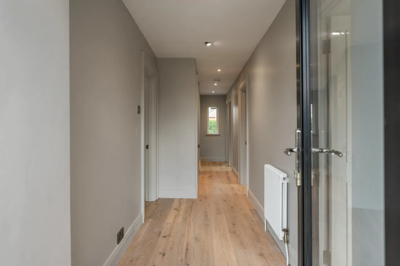 Solid engineered flooring, access to roof space, two storage cupboards.