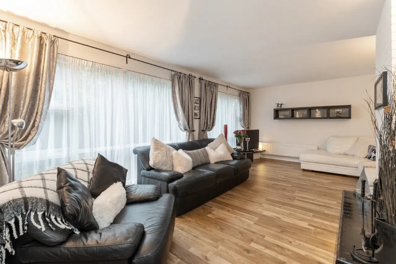 Solid wooden flooring. uPVC double glazed French doors to garden.