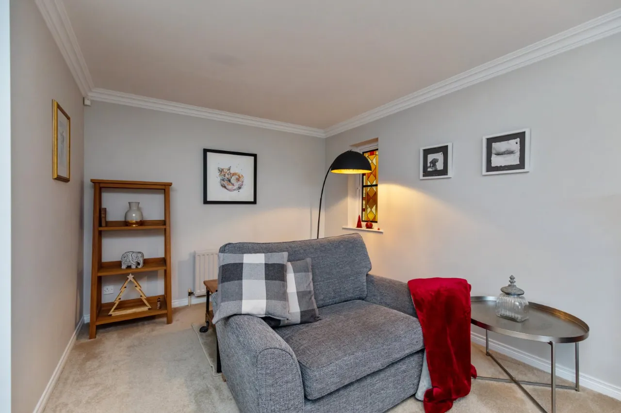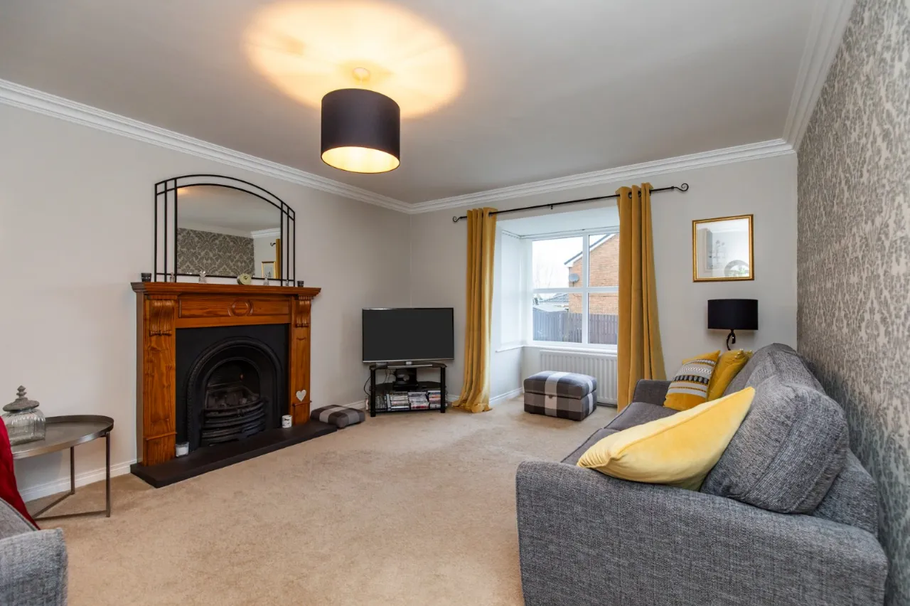 Hardwood fireplace surround, cast iron and gas coal effect fire, corniced ceiling, space for casual dining.