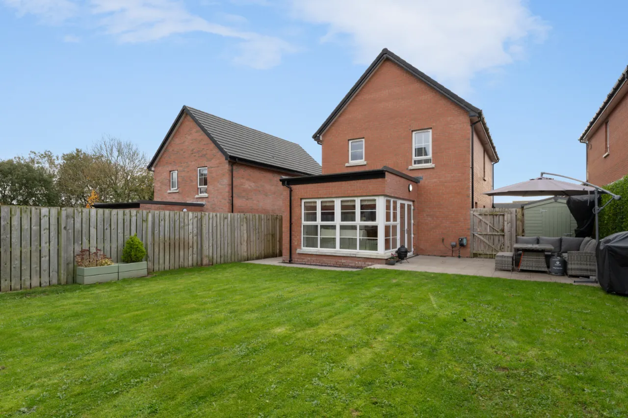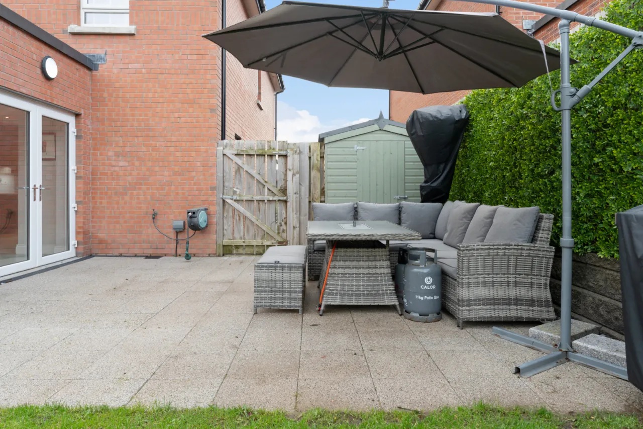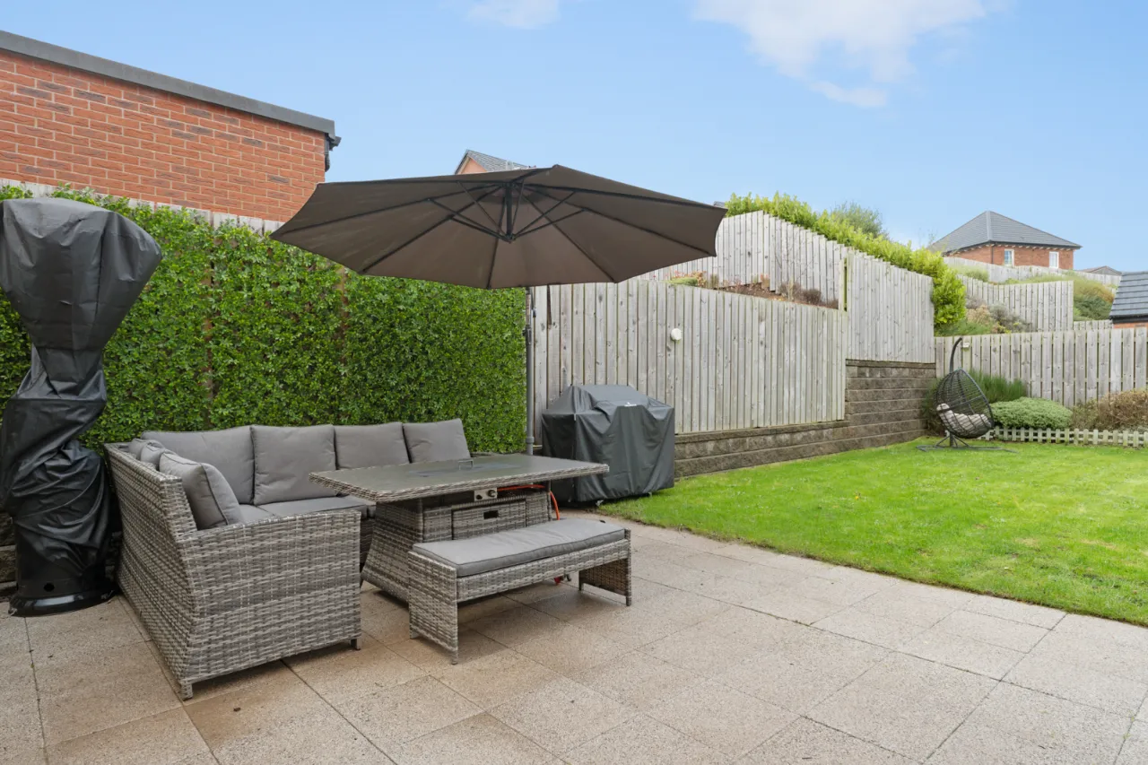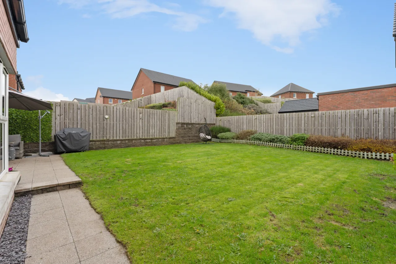 Garden laid in lawn, ample driveway for off street car parking to front. Garden laid in lawn with paved patio area ideal for outdoor entertainment, mature plants and shrubs outside water tap, outside light to rear. External soffit lights.