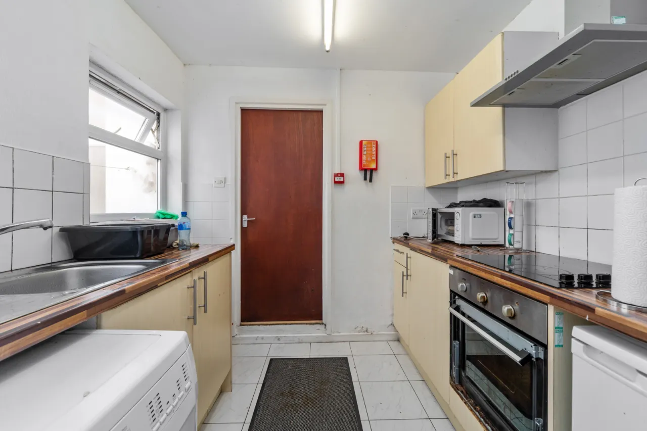 KITCHEN AND FIRE ESCAPE: 8'5" x 8'3" (2.56m x 2.52m)