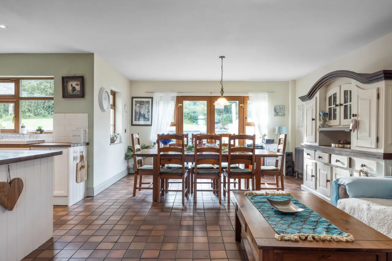 Kitchen - Low Level units, Belfast Sink, Range Cooker, integrated dishwasher, tiled floor. Pantry, double doors to garden