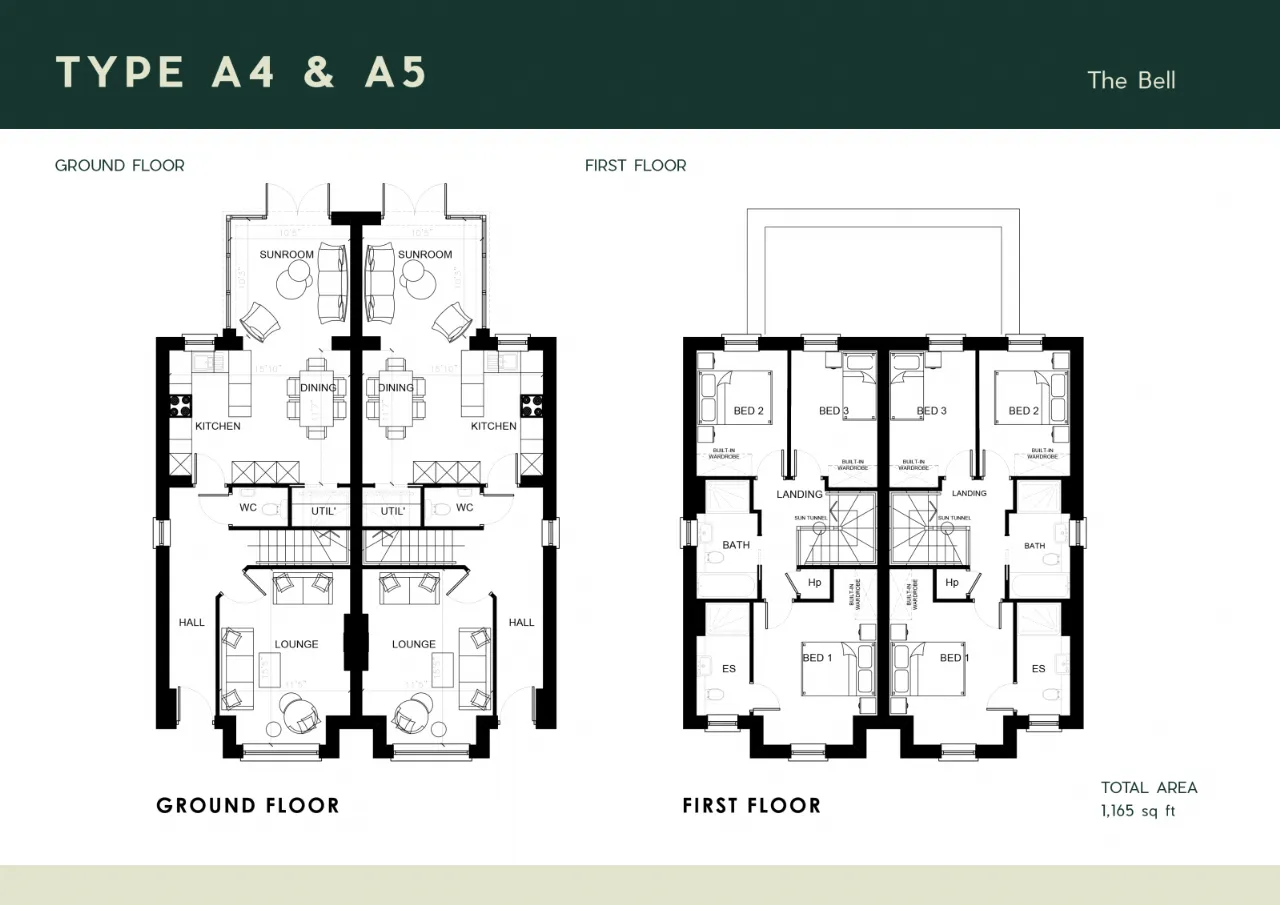 Mariners Rest consists of a range of three bedroom semi detached homes with sunrooms and detached bungalows with 3 and 4 bedroom options available. All properties offer separate living rooms, open plan kitchen/dining rooms and master bedrooms with en suites. The 4 bedroom detached bungalow also offers an additional shower room and study on the first floor.