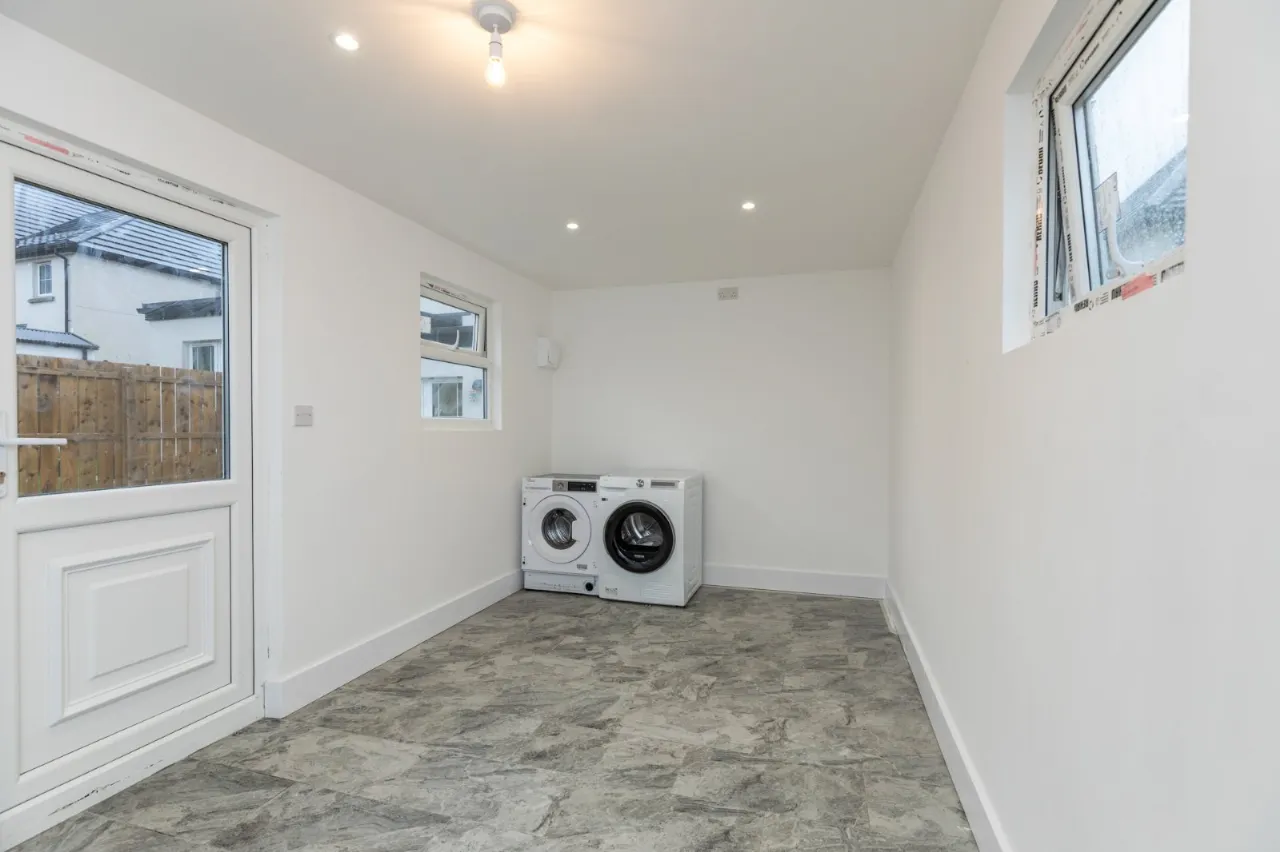 Tiled floor, spotlighting, double uPVC doors to paved patio