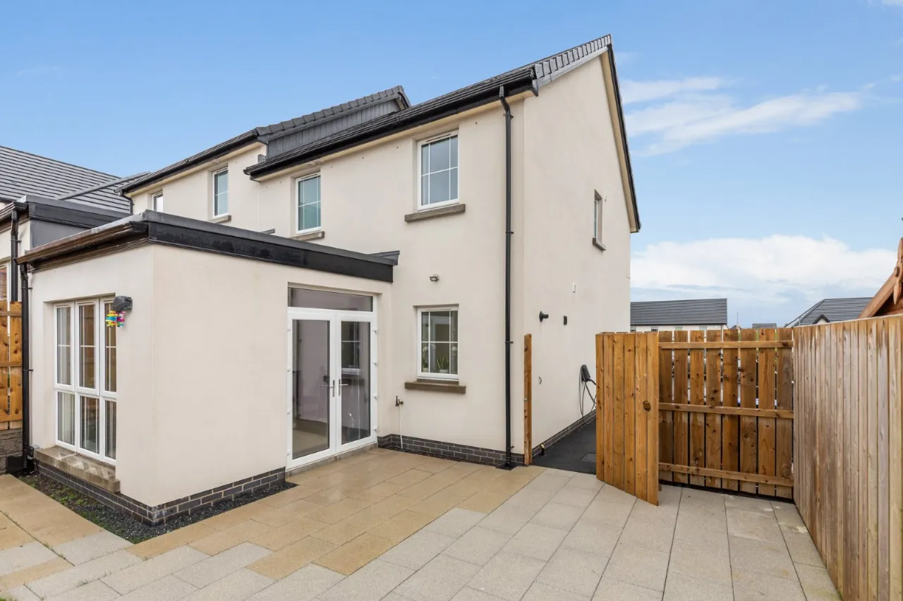 Tarmac driveway to the side with paved path. Good sized enclosed rear garden in lawn with paved sitting area. Large Outside home office