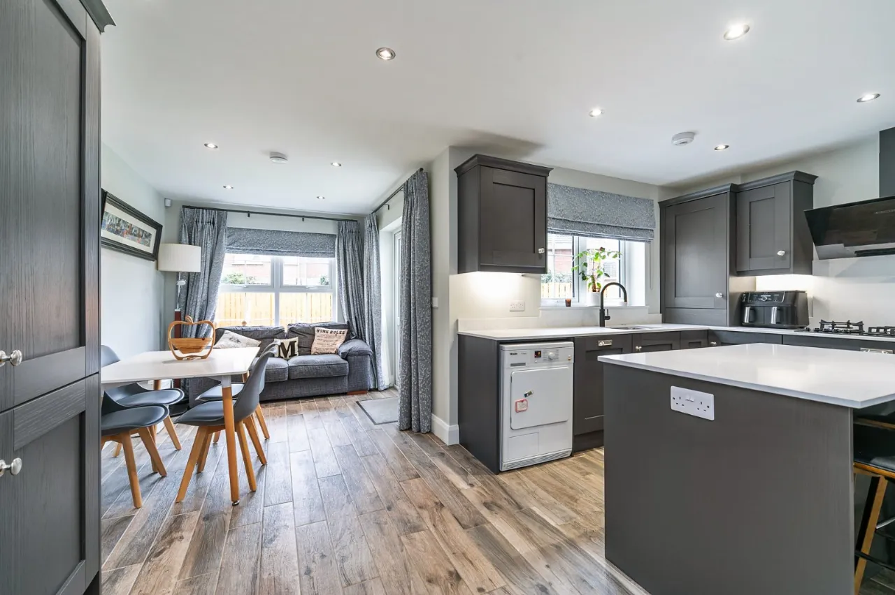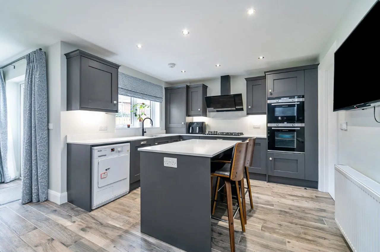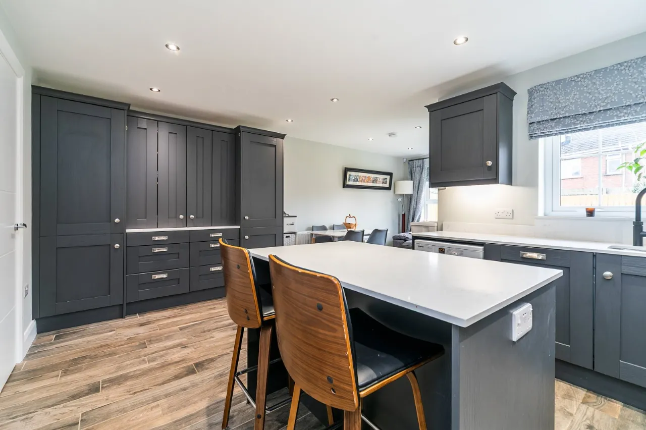 Excellent Range of units and appliances, central island unit, quartz worktops, access to rear