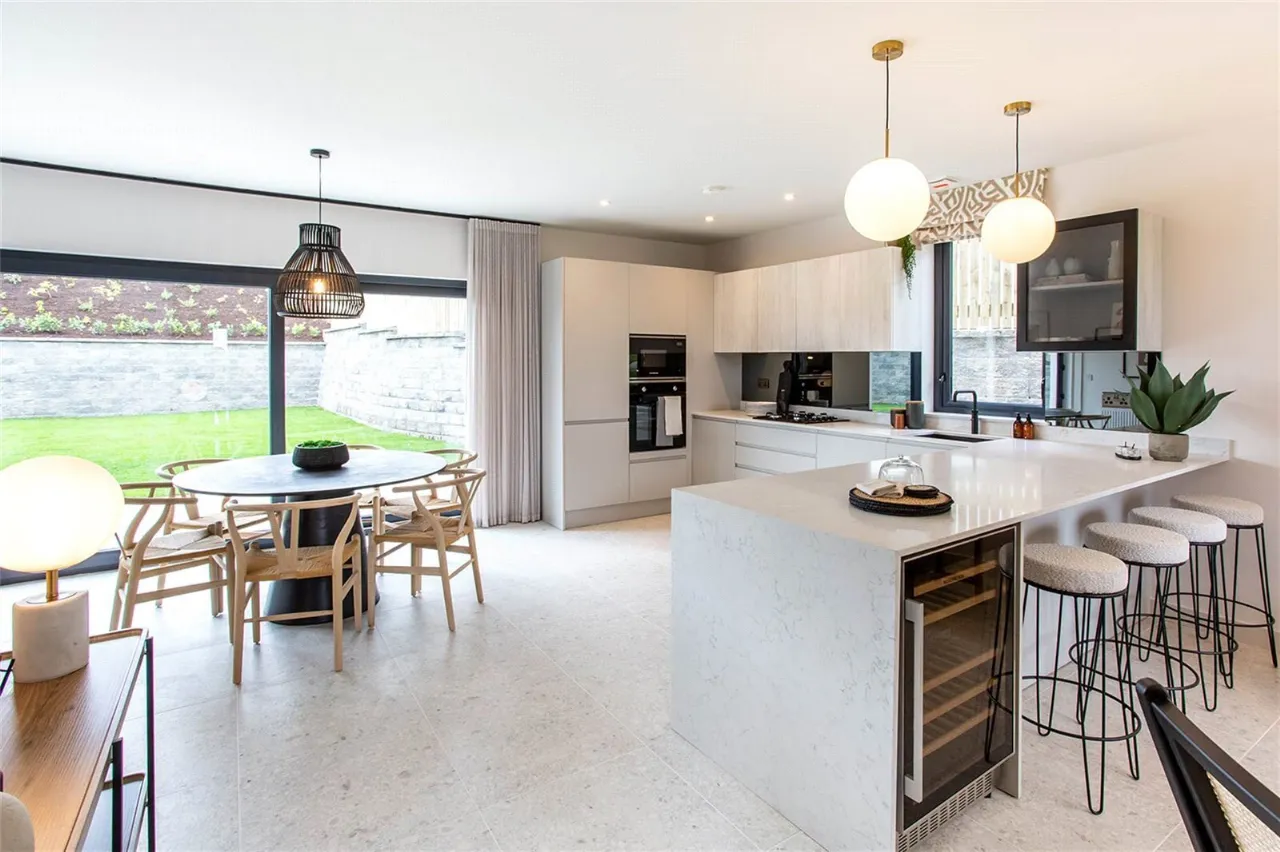 Tiles to bathroom floors, showers and splash backs. Tiles to cloakroom and utility floors (where applicable)