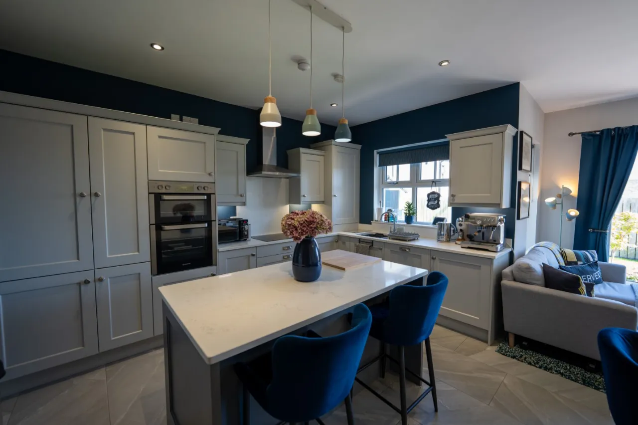 Impressive Kitchen With Integrated Appliances & Quartz Worktops & Island Open Plan To Dining Area