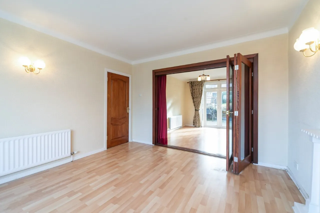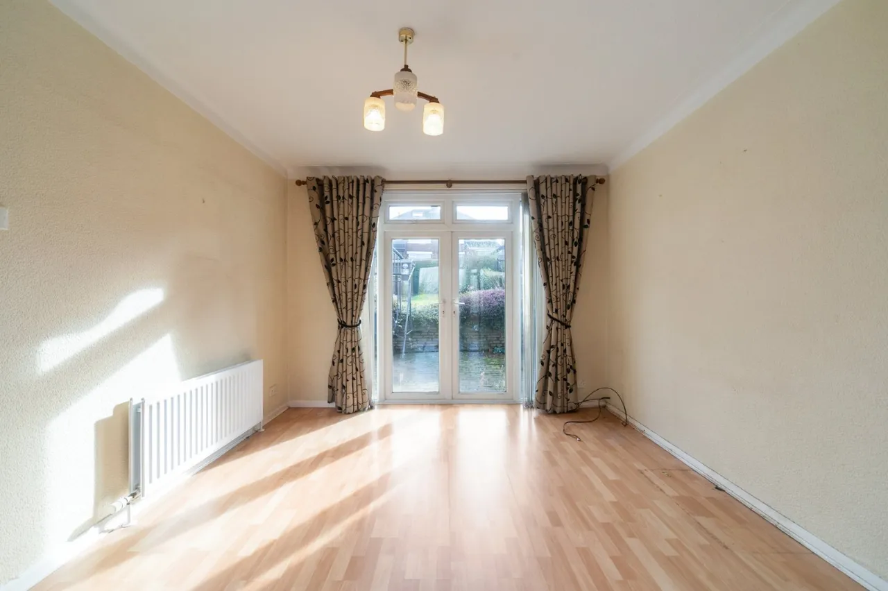 French double doors to rear, wood laminate flooring.