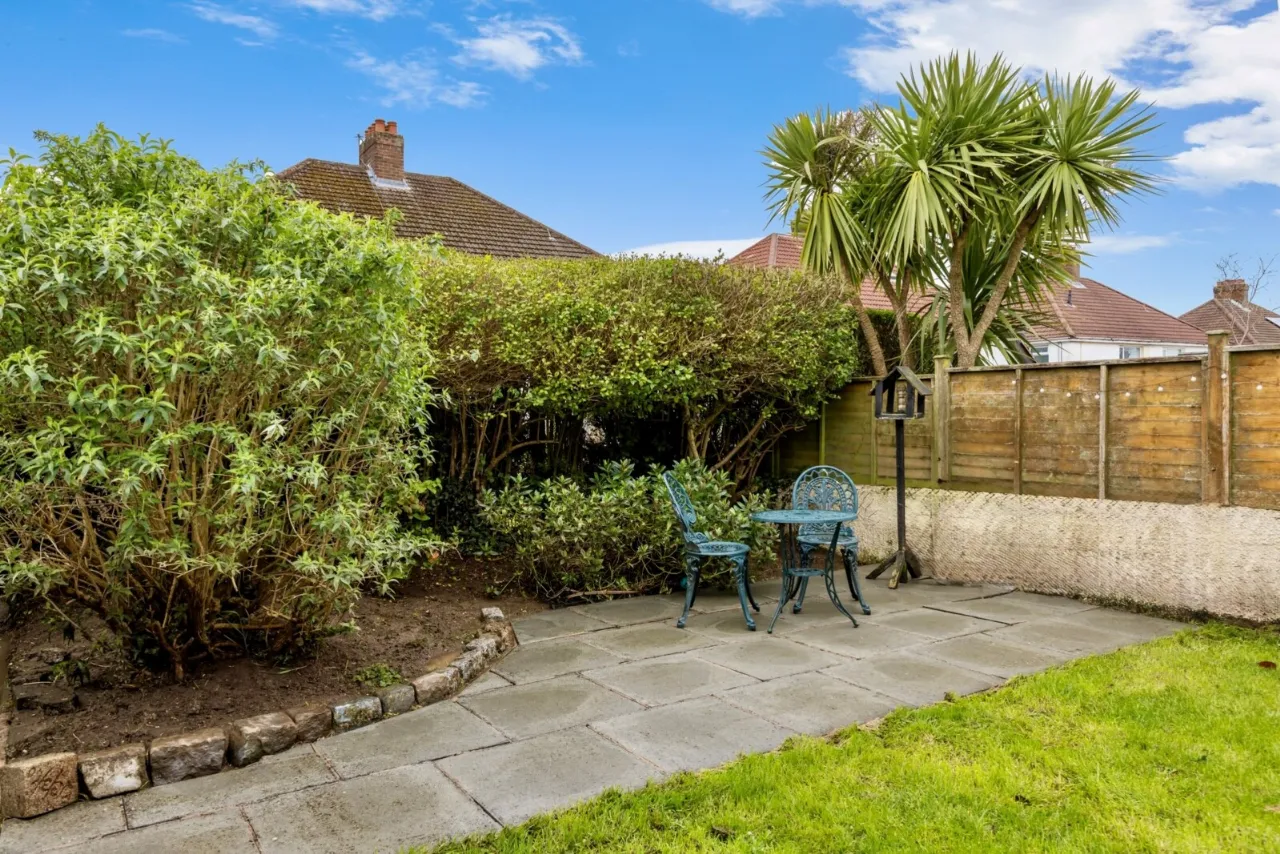 Outside is a paved patio area and garden laid in lawn with South Westerly aspect enjoying afternoon sunshine.