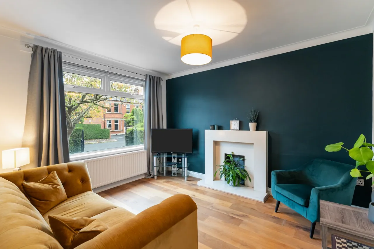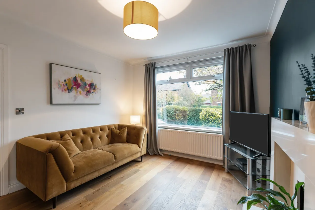 Wooden floor, corniced ceiling, patio doors to rear garden.