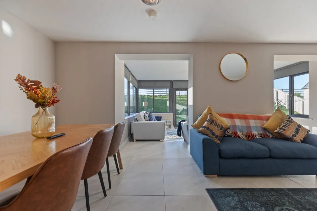 Ceramic tiled floor, triple aspect, countryside views, uPVC double glazed French doors to rear enclosed garden.