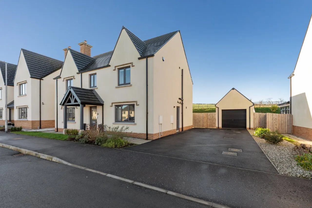 Black roller door, light and power, plastered ceiling and walls, access to roofspace. uPVC double glazed side window and side pedestrian door. Approached via double width tarmac driveway with ample parking for 4 cars.