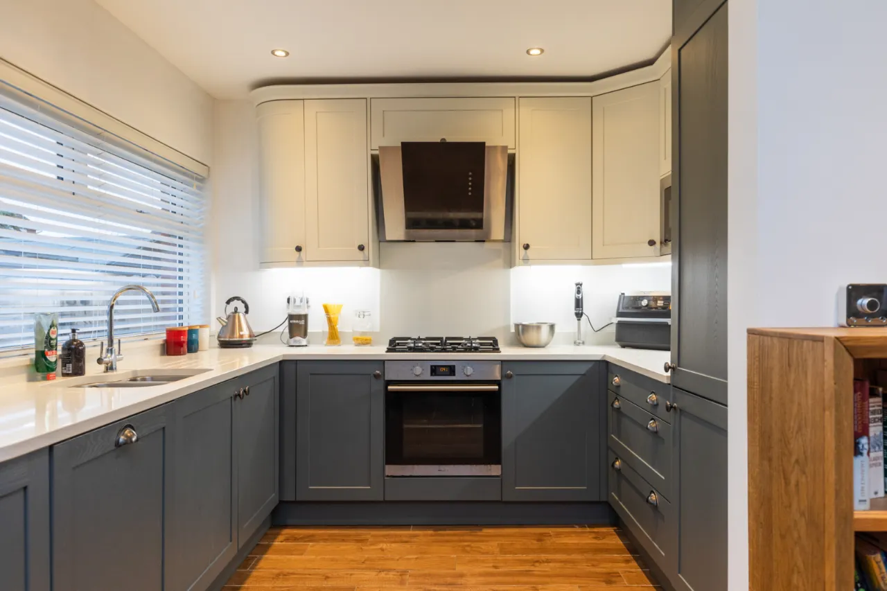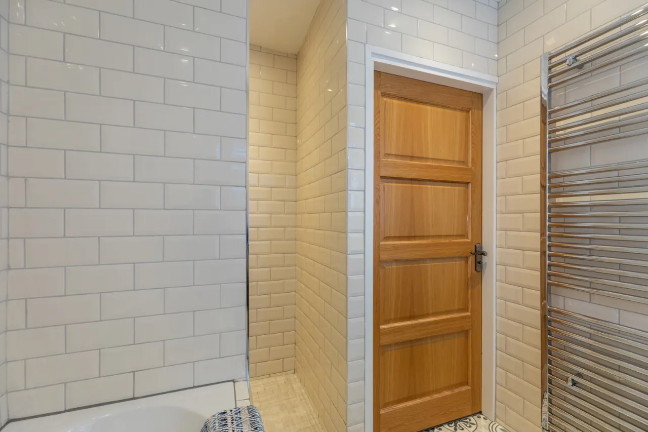 Tiled wood effect flooring, recessed spotlighting, storage below stairs with combi gas boiler, Hive heating system.