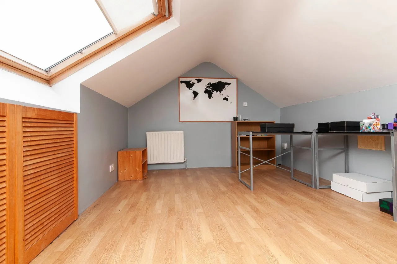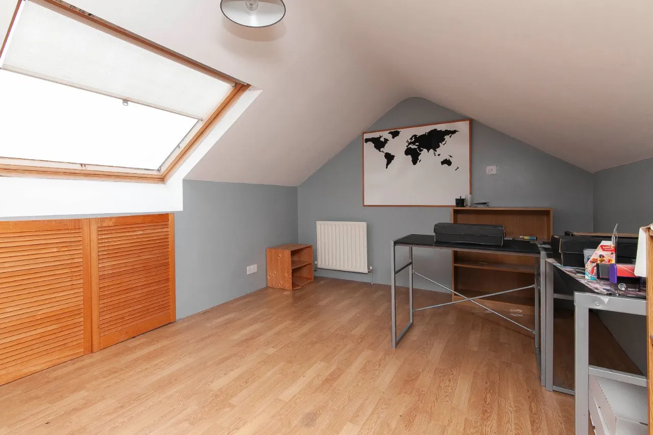 Accessed via a built-in ladder, the floored loft space benefits from carpeting, heating, electrical sockets and a skylight. This versatile area is ideal for use as a home office, hobby room or additional storage (subject to relevant approvals).