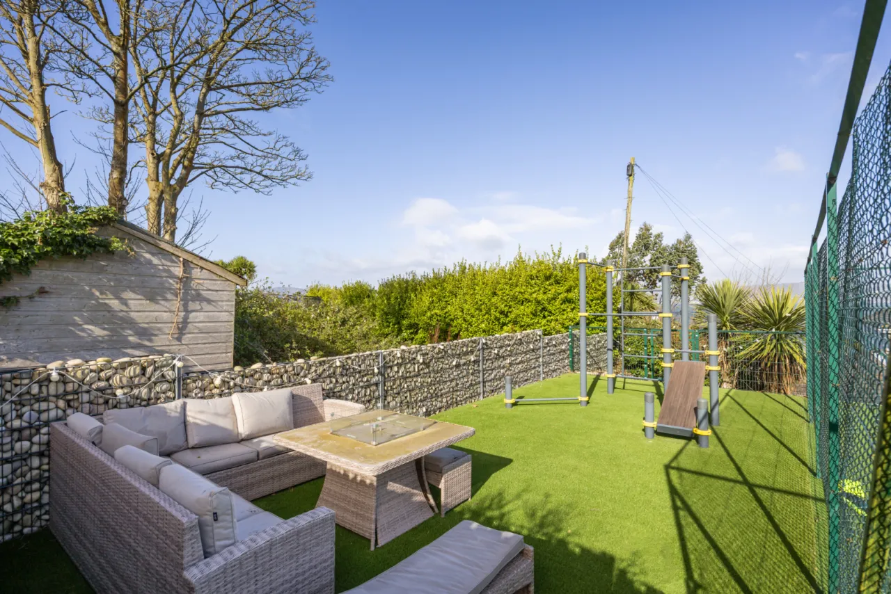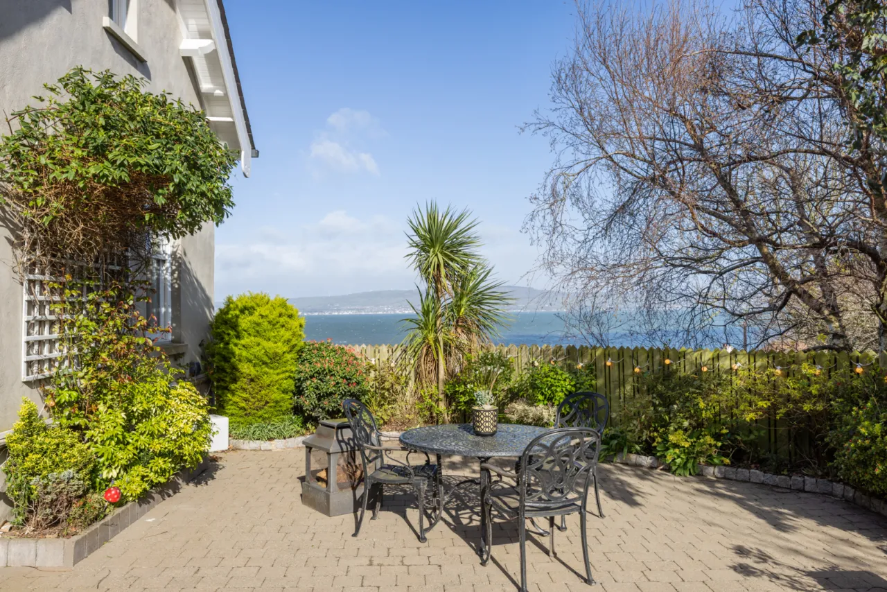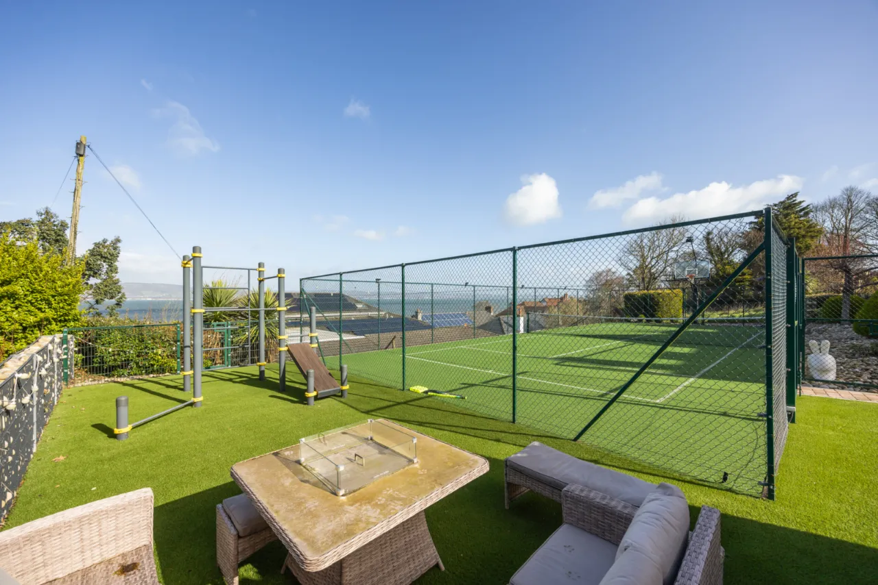 Approached by private screened wall with natural brick top, double entrance pillars and electric gates leading into wrap around driveway with solid granite trim with extensive parking and turning space. Landscaped gardens laid in lawns with a colourful array of flowerbeds with shrubs, plants and mature trees. Range of patios for morning, afternoon and evening sun. Two storage sheds. Carport with door to garage. Pedestrian access to Circular Road West via secure gate. Bin store area. Outside tap and lighting. Stunning views across Belfast Lough and the Co. Antrim hills. Full sized tennis court and putting green.