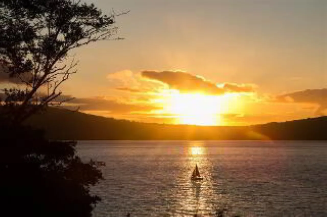 Bedroom Area: New England style eaves ceiling with exposed beams. Natural stone tiled floor. Double window overlooking Belfast Lough and the Co. Antrim hills and beyond.
