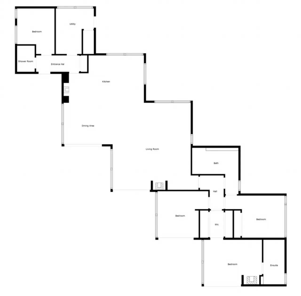 Fully tiled shower area, floating vanity unit and concealed cistern WC. Thermostat controlled mains shower unit with drench shower head. Recessed mirror over sink. Chrome towel radiator. Vaulted ceiling. Half tiling to walls. Tiled floor.