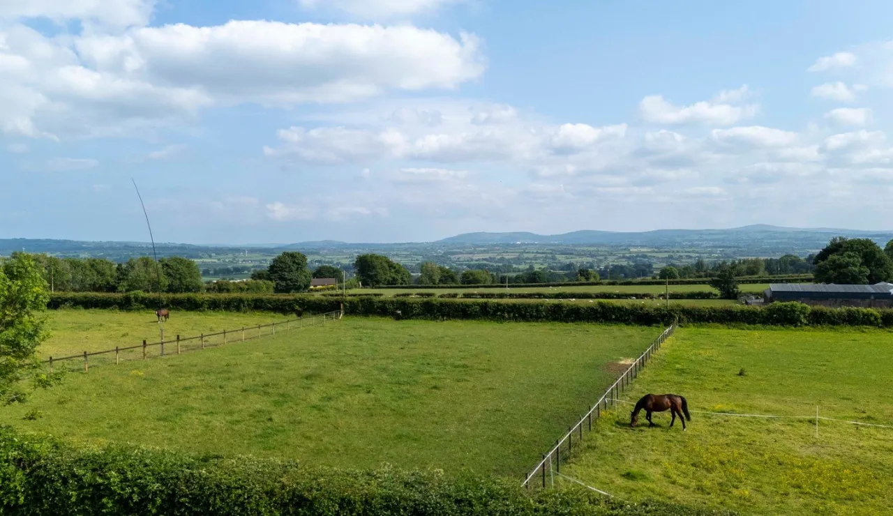Triple aspect windows, enjoying elevated rural views. Vaulted ceiling. Cast iron multi fuel stove on granite hearth. Hardwood, double glazed, sliding patio door to garden. Tiled floor.