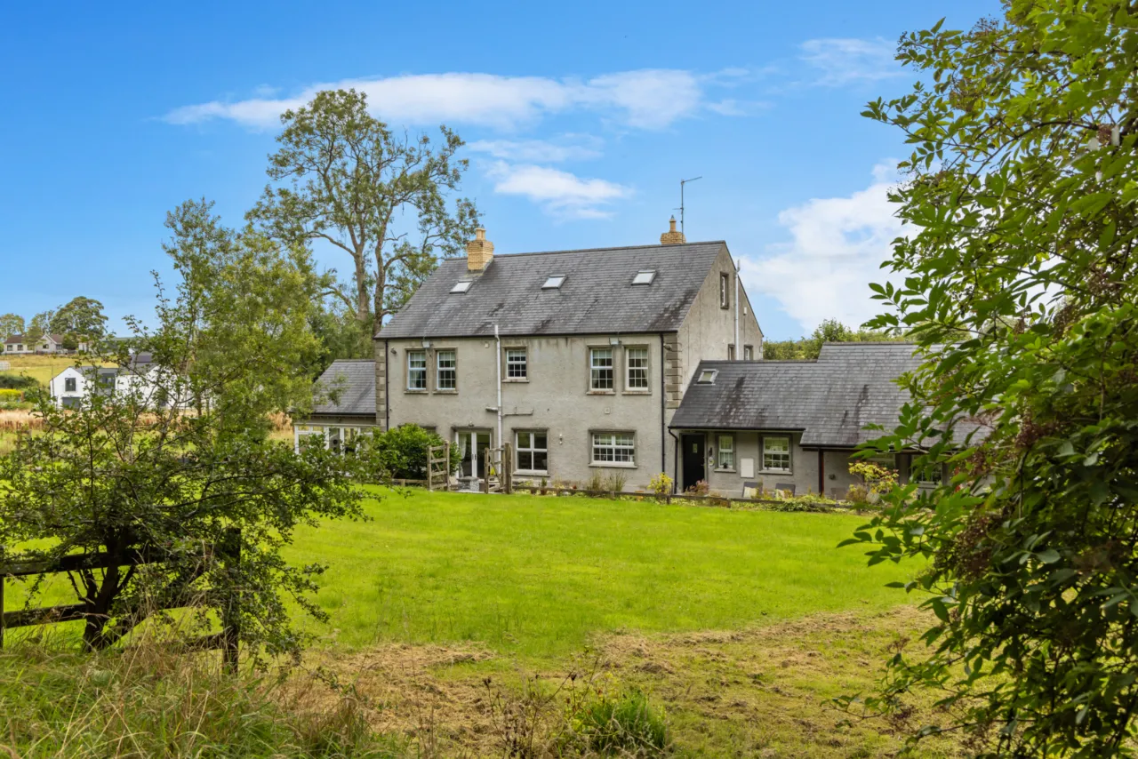 Magnificent site accessed via electric gates extending to 2.2 acres with formal lawns, patio and woodland, generous parking with turning circle for several cars, granite external steps at all external doors
