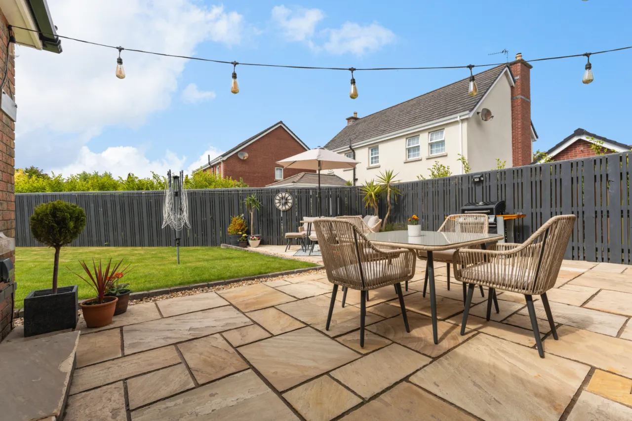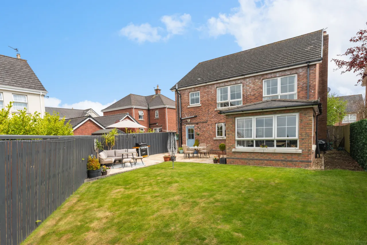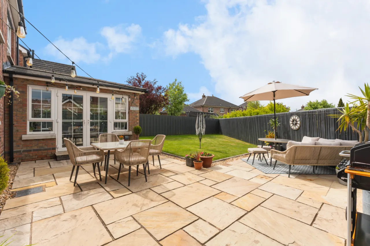 Front with garden laid in lawn, driveway, mature shrubs and planting. Rear garden laid in lawn, paved patio area ideal for outdoor entertaining, outside sockets, light and water tap