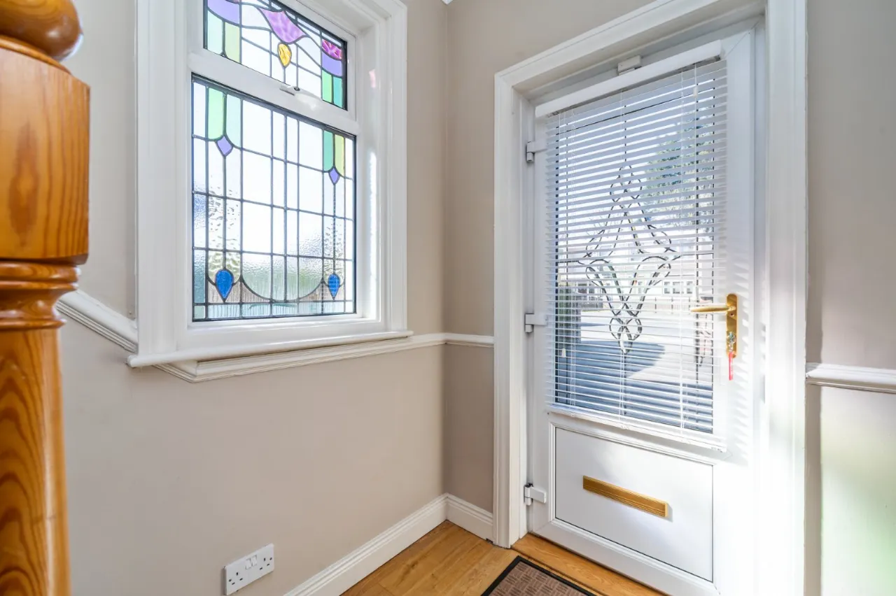 Pillars with gate to tarmac driveway parking. The front enclosed by hedge, good sized enclosed rear garden in lawn with flowerbeds. Oil fired boiler house and PVC oil tank