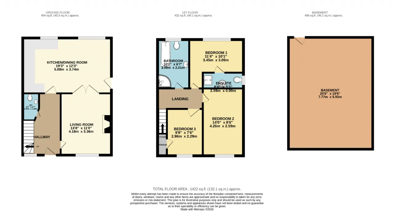 BASEMENT: 25'6" x 19'5" (7.77m x 5.93m)