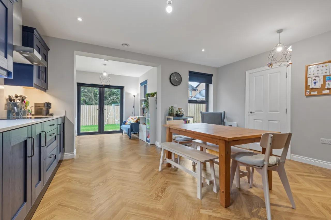 This particular semi detached family home is in the recently constructed Lancaster park development. It has exceptionally well maintained accommodation throughout with generous proportions, providing four bedrooms, spacious living room, kitchen with dining, sunroom, downstairs cloakroom, modern bathroom and ensuite. In addition, the property is positioned on a pleasant site with generous gardens to rear, driveway parking and park.