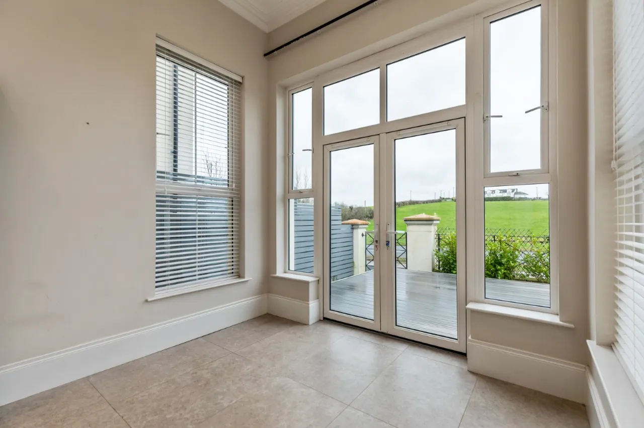 Range of high and low level units, granite work surfaces and upstands, inset 1 1/4 bowl sink unit with chrome mixer taps, Quooker hot water tap, 4 ring Neff gas hob, stainless steel extractor fan above, integrated Neff oven, integrated Neff fridge and freezer, French doors to composite decking and garden, outlook to surrounding countryside.