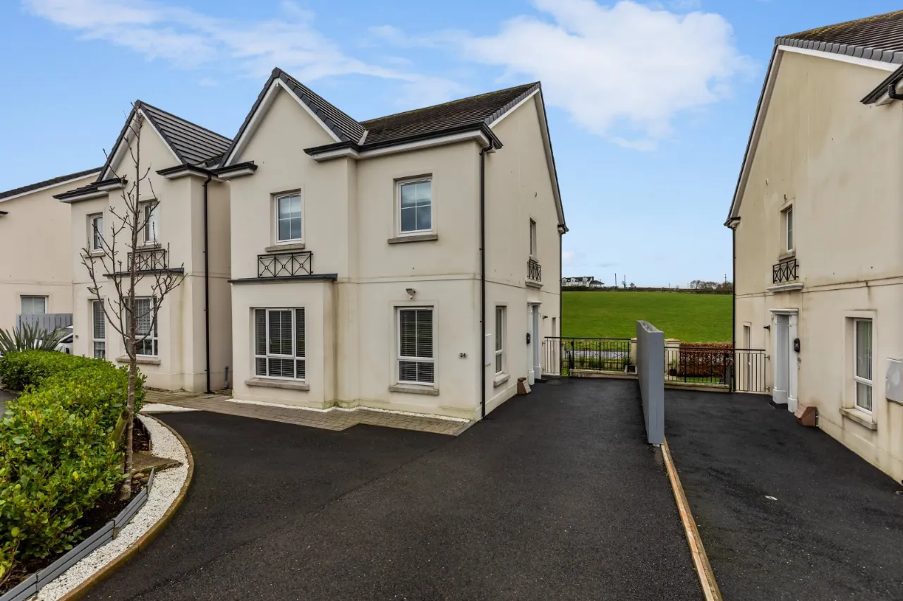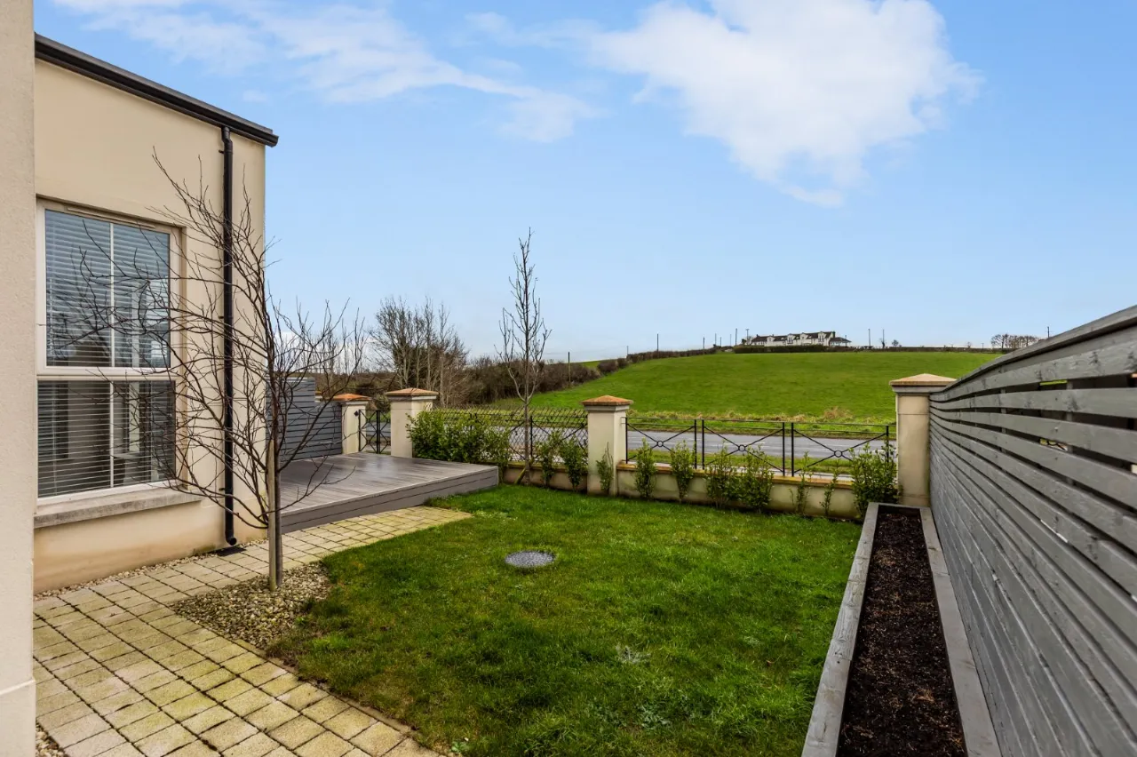 Tarmac driveway to front with parking for 3 cars. Enclosed rear garden in lawn with composite decking area, raised flowerbeds bordered by estate railing and hedging. Additional paved patio area.