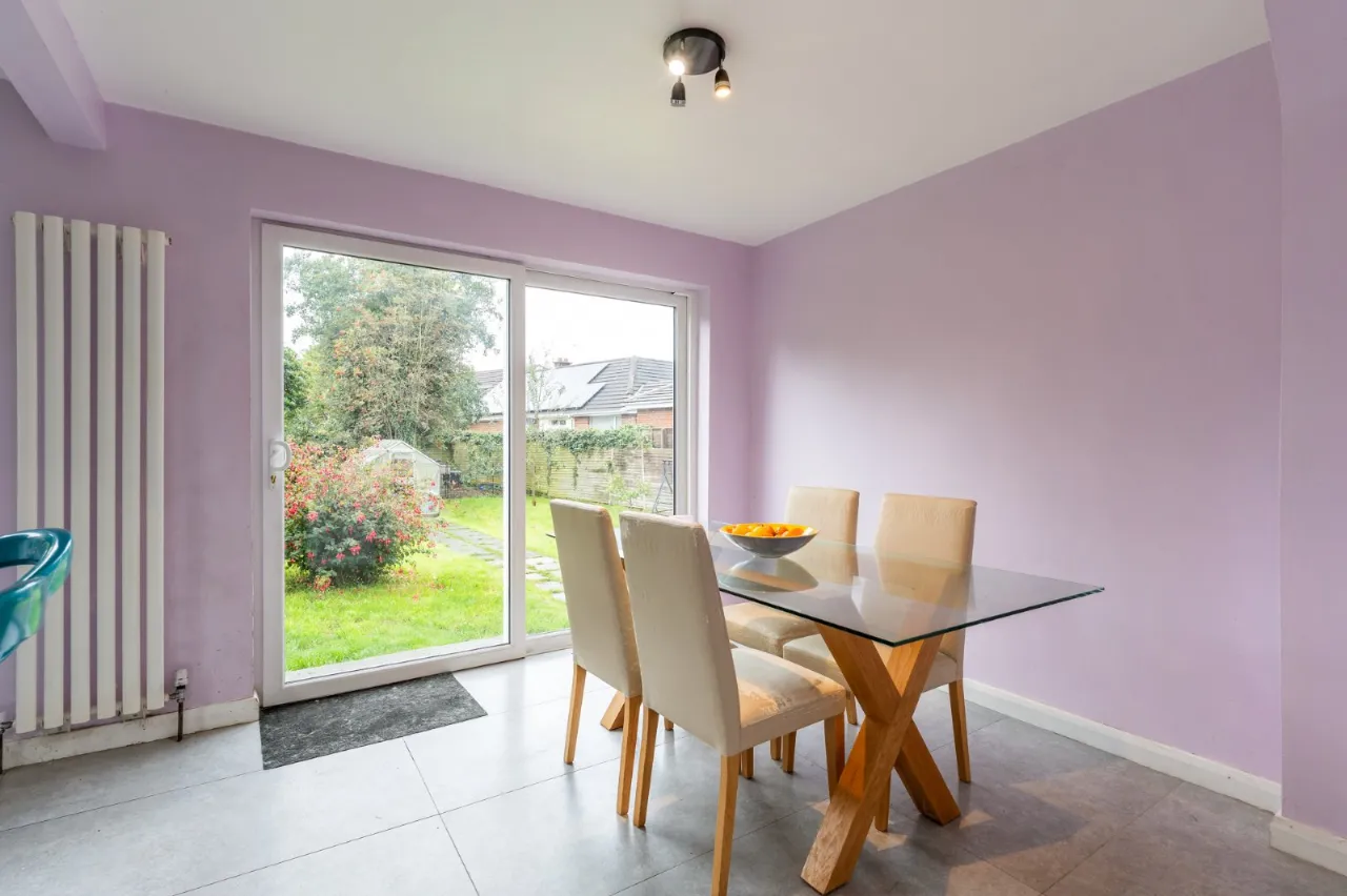 Range of high and low level units, laminate work surfaces, built in breakfast bar, space for range cooker, space for fridge freezer, single drainer stainless steel sink unit with chrome mixer taps, ceramic tiled floor, uPVC double glazed sliding doors to garden.