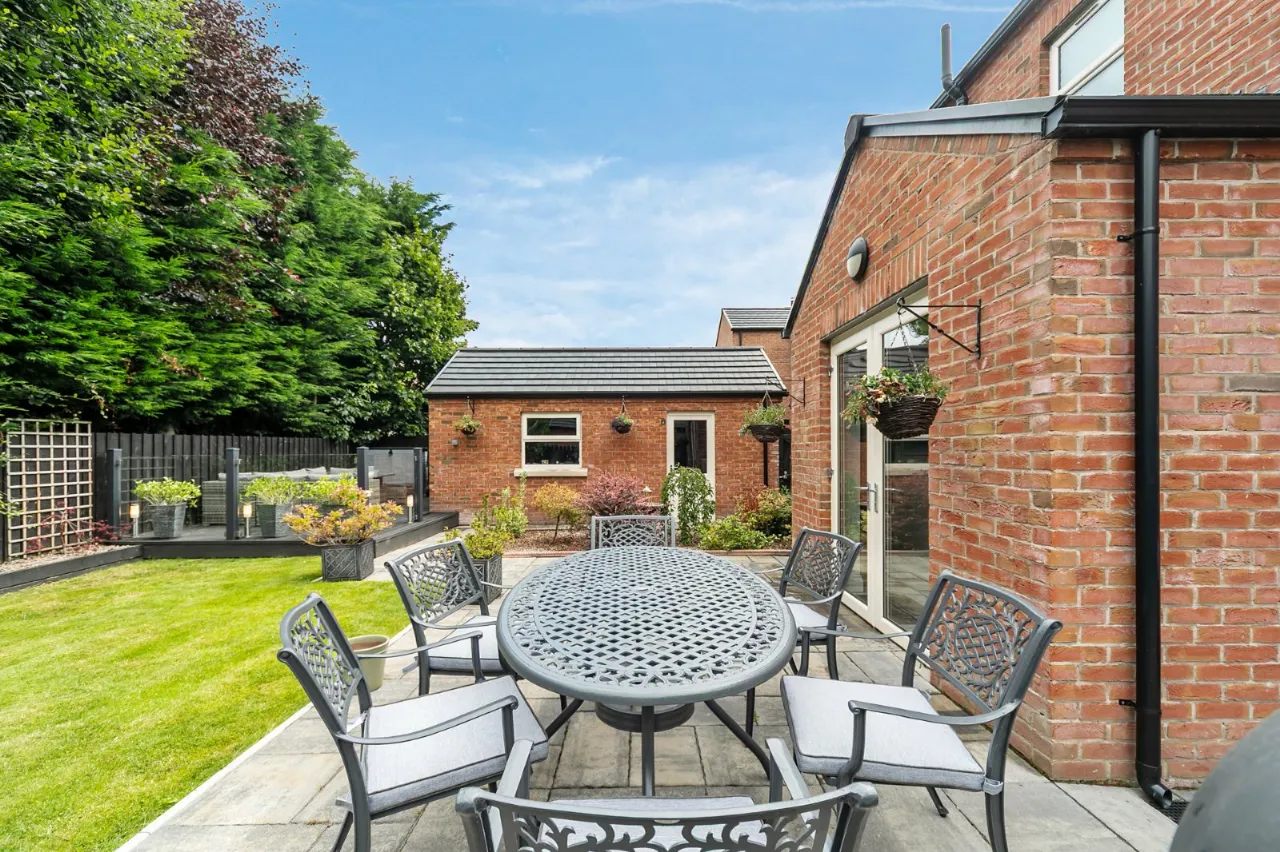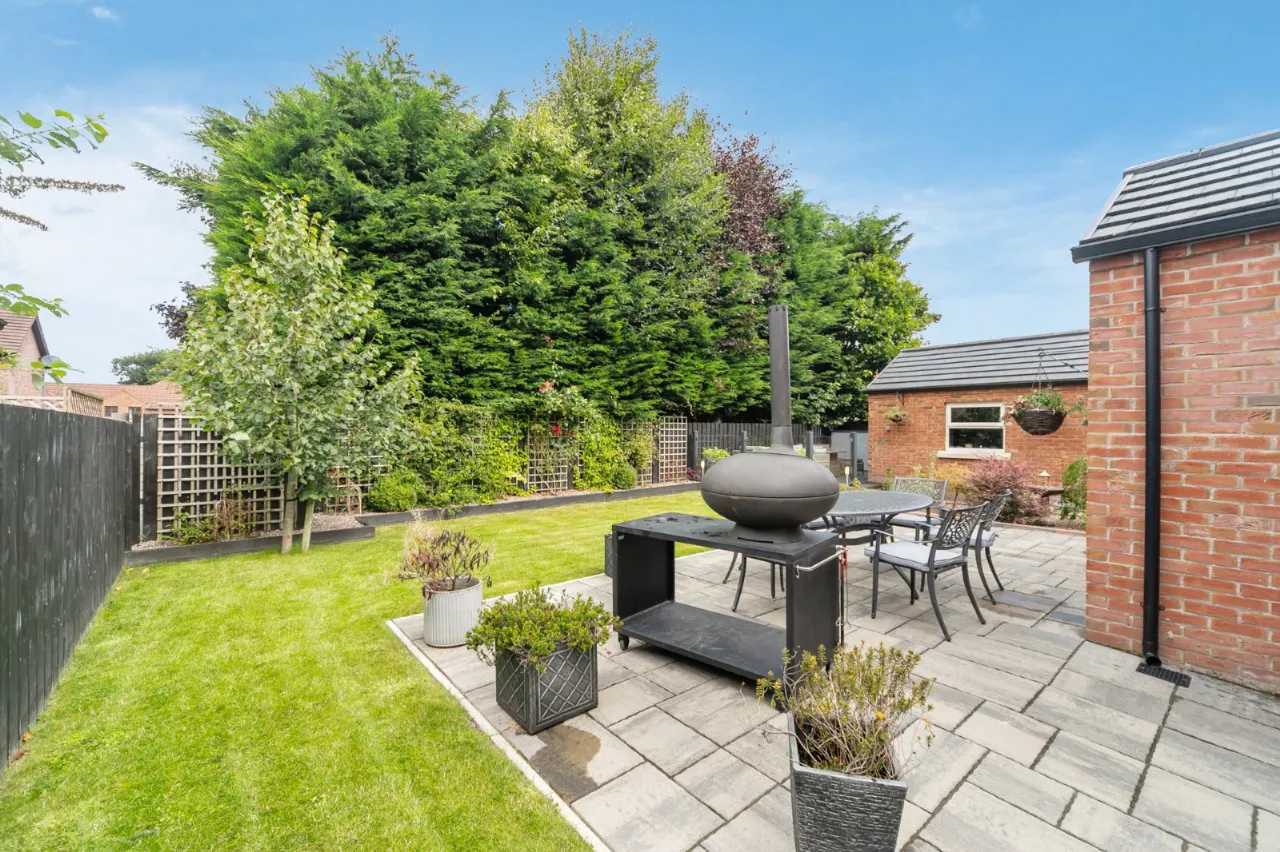 Front garden in lawn with tarmac driveway parking to the side. Enclosed rear garden Enclosed rear garden by timber fence with paved sitting area and ground flowerbeds. Paved composite decked sitting area with glass side panels and outside light and tap