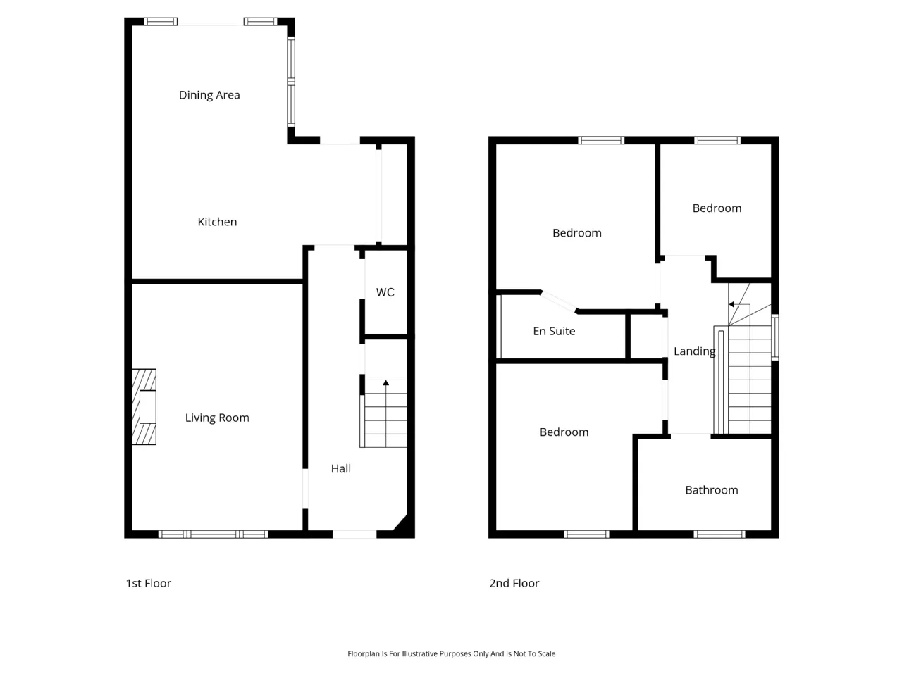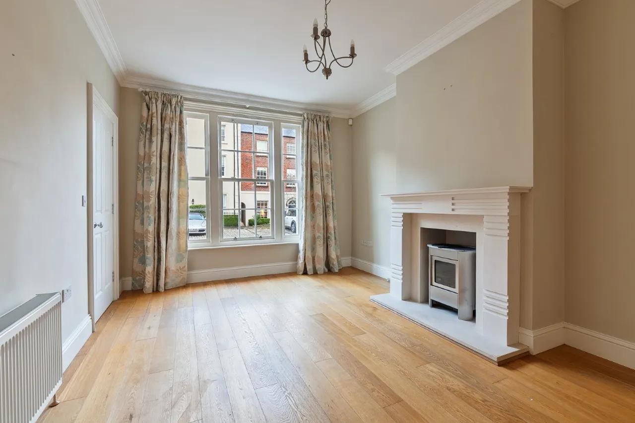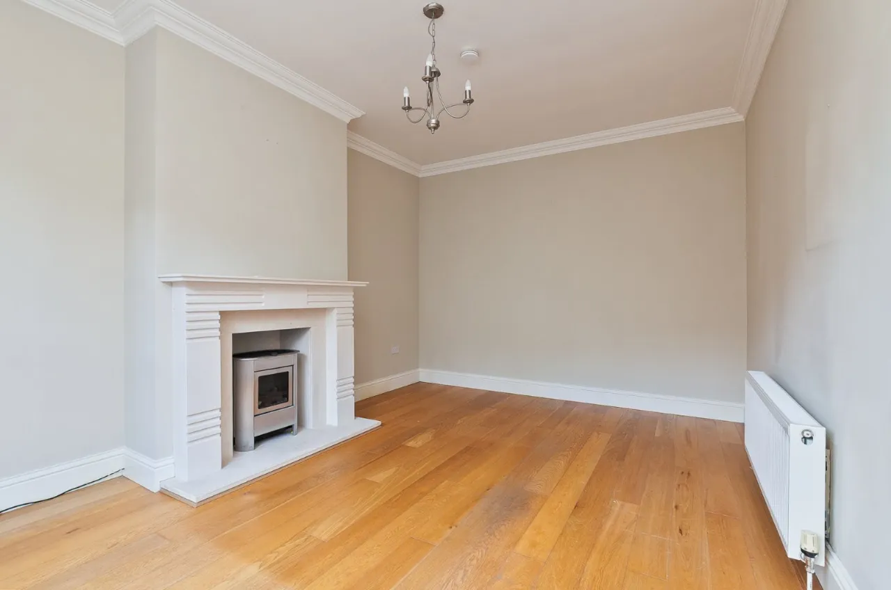 The accommodation comprises a generous living room with a feature fireplace, modern kitchen with integrated appliances and a dining area, ground floor WC, first floor bathroom and three well-proportioned bedrooms – principal with en suite. Externally there is two parking spaces and an excellent rear patio garden providing a great space for al fresco entertaining.