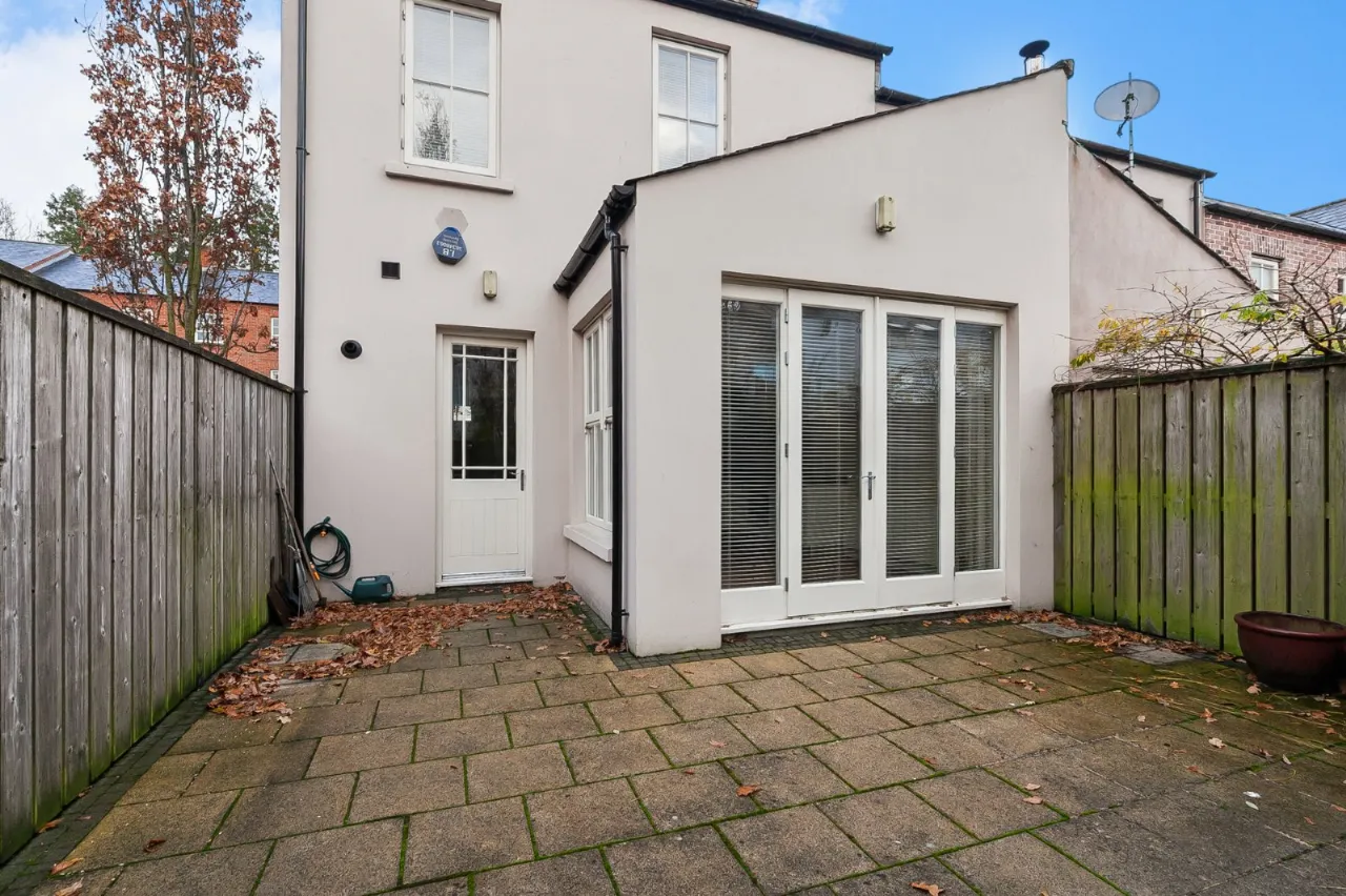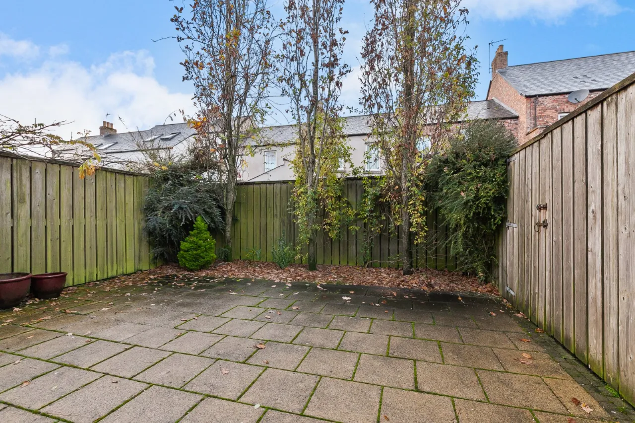Parking to the front for two vehicles. Enclosed rear garden in flagstones with boundary fencing and mature trees.