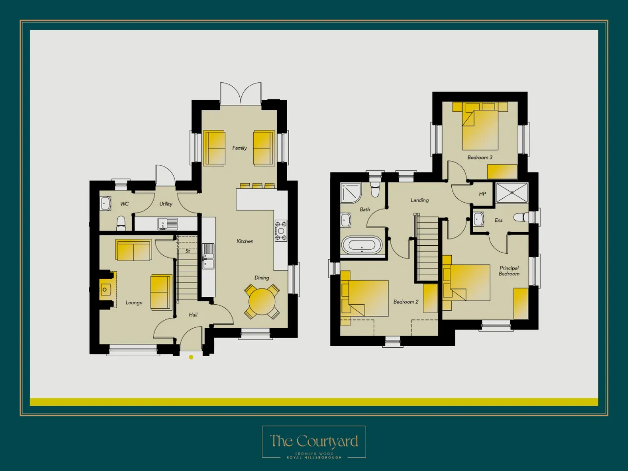 Thanks to excellent road and public transport links, Royal Hillsborough is also situated within a short drive of Belfast’s bustling city centre, meaning that the homes at The Courtyard are ideal for those seeking a peaceful escape without sacrificing urban convenience. With an accessibly placed bus stop situated right outside of the Cromyln Wood development, in addition to Sprucefield Park and Ride located less than three miles away, homeowners can experience hassle free travel to Belfast City and beyond. If a commute to further afield is required, both Belfast International Airport and George Best City Airport can also be easily accessed.