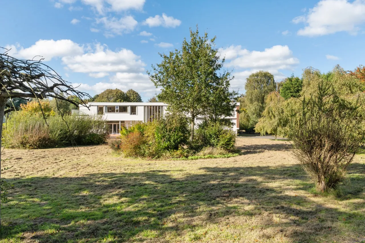 Extensive site of just under 1.5 acre laid in lawns bordered by mature hedging and trees, paved patio area, sweeping tarmac driveway.