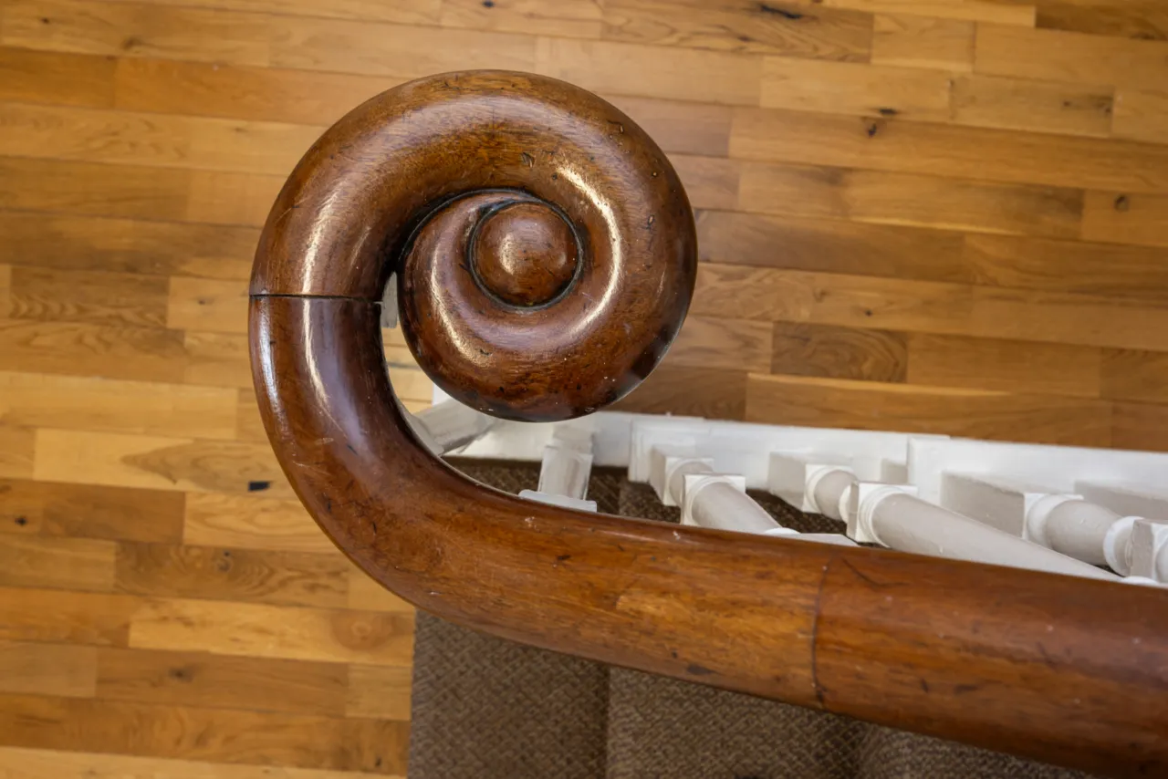 Solid wood flooring, corniced ceiling, ceiling rose, corbels, part wall panelling.