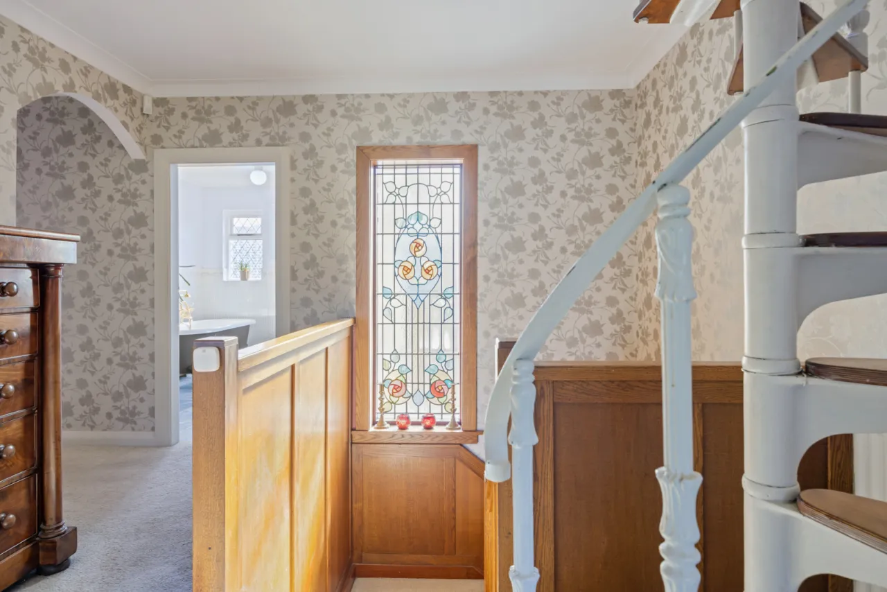 Access to Roofspace/Attic Room via spiral staircase, corniced ceiling.