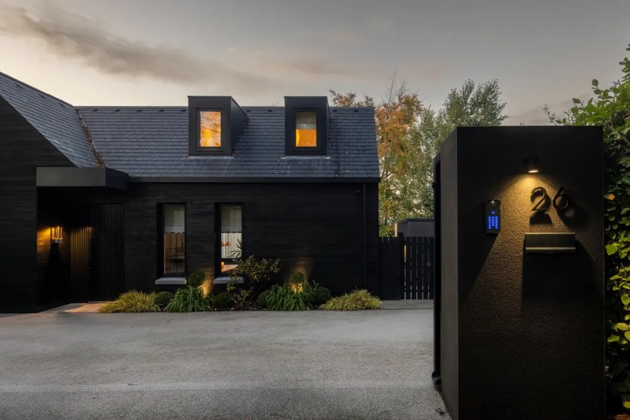 Feature acoustic panelled media wall. Contemporary 2 sided gas fire. Space for study area with feature slatted wood room divider. Recessed lighting. Feature cove lighting.